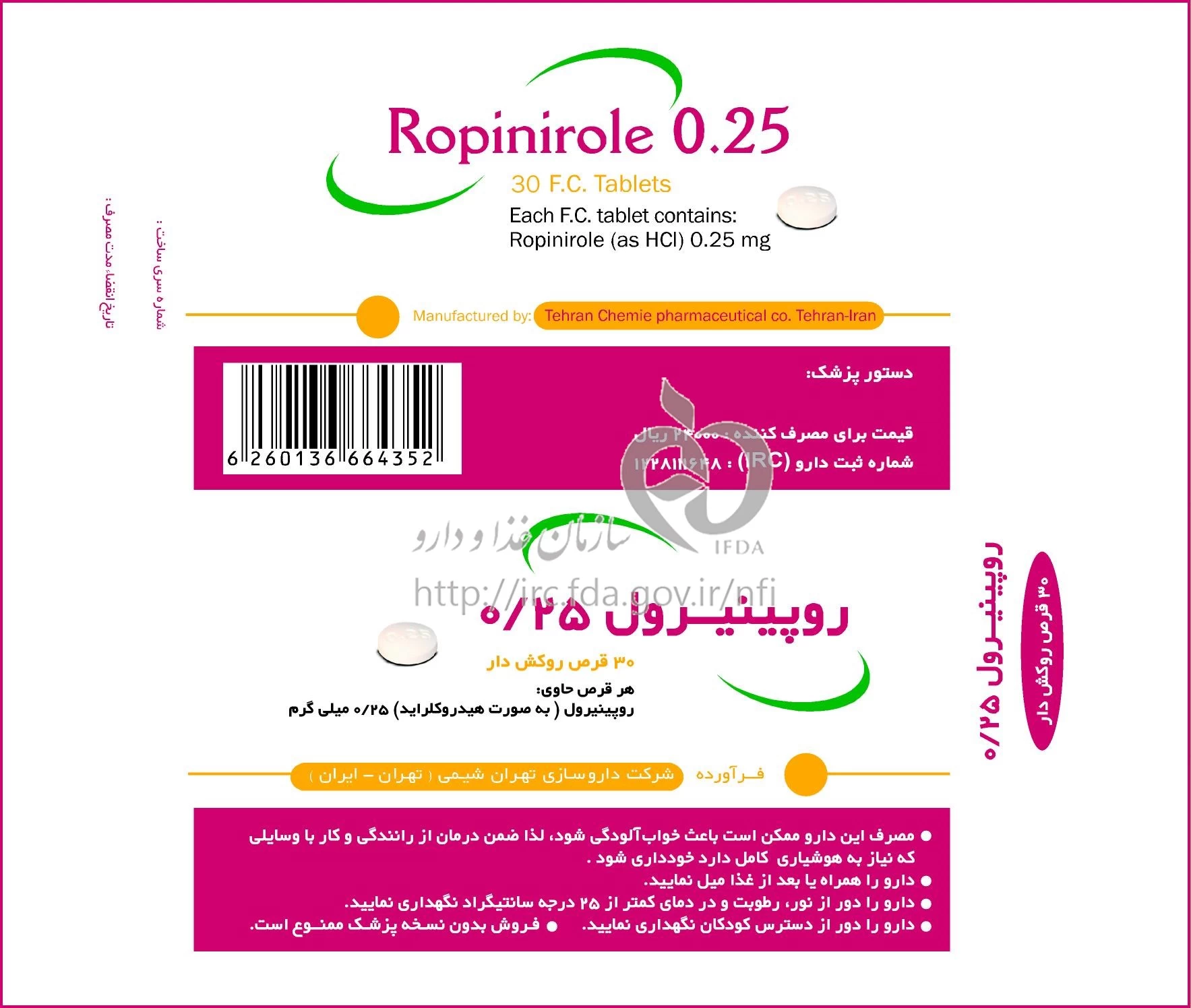 موارد مصرف روپینیرول قرص خوراکی 0.25 mg