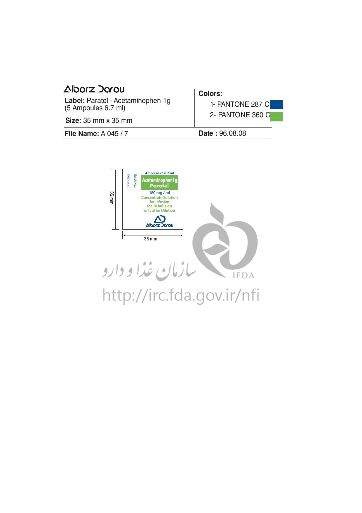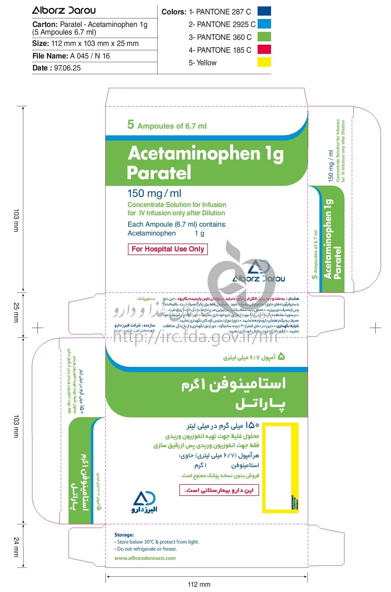 دکترها پاراتل محلول غلیظ تزریقی داخل وریدی 150 mg/1mL 6.7MILLILITER