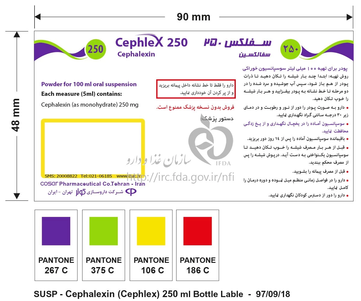 سفلکس پودر برای تهیه سوسپانسیون خوراکی 250 mg/5 mL 100MILLILITER
