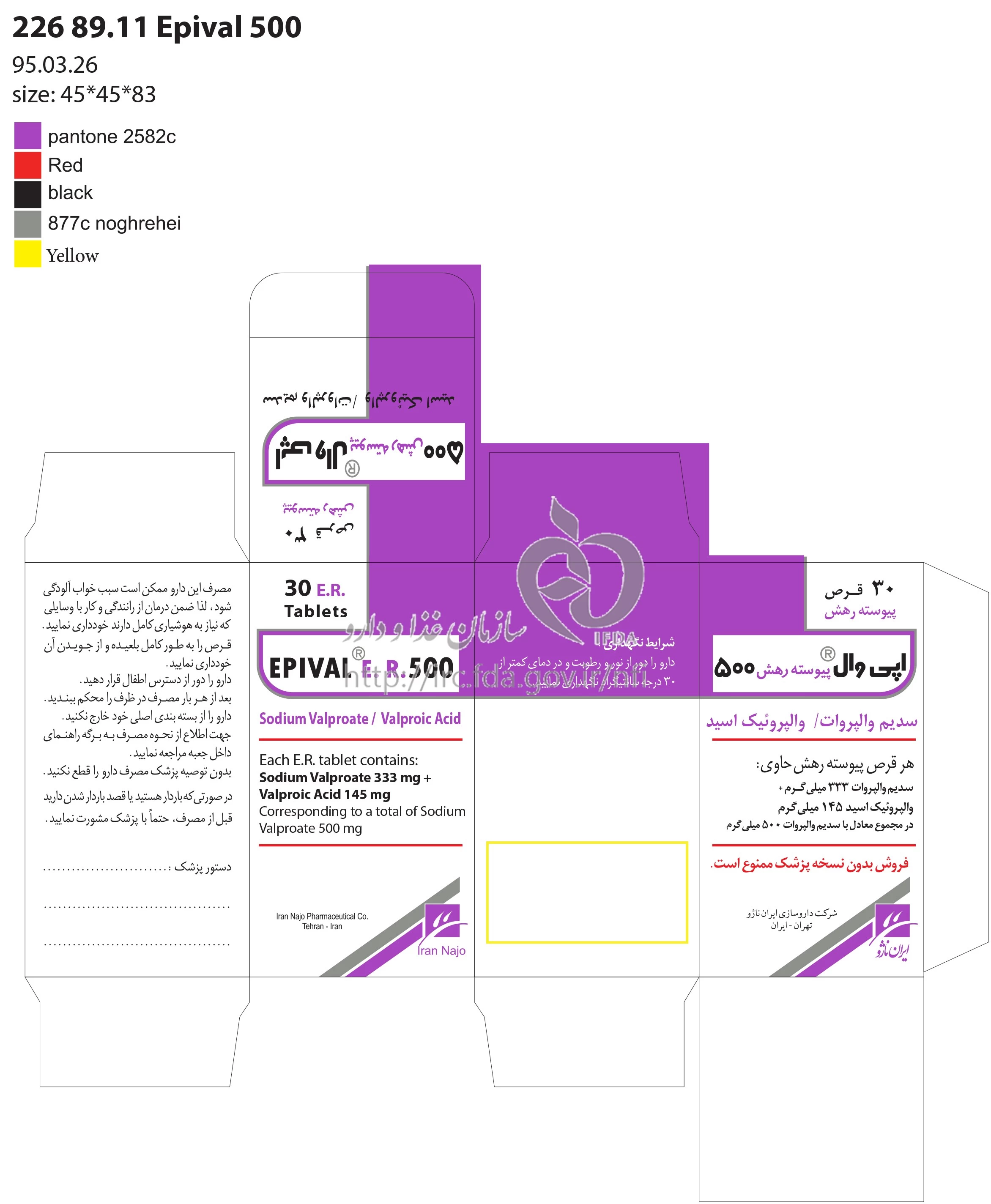 اپی وال قرص پیوسته رهش خوراکی 500 mg