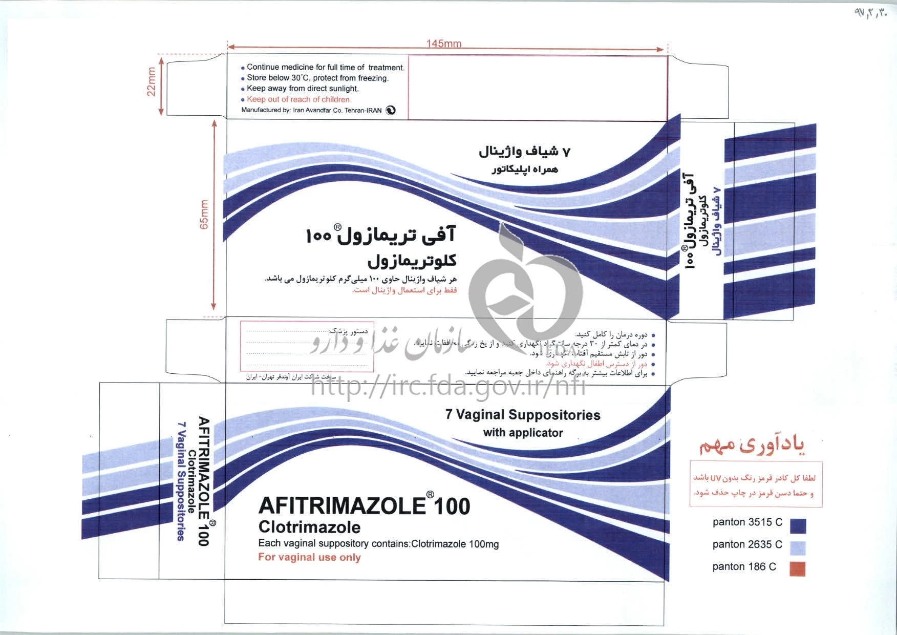 آفی تریمازول شیاف واژینال 100 mg