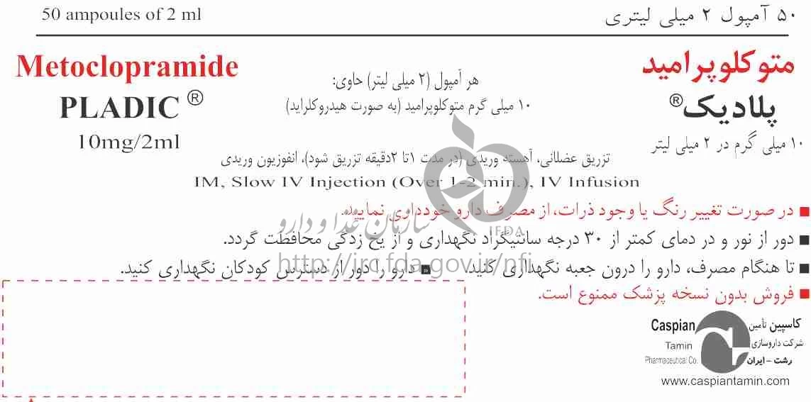 موارد مصرف پلادیک تزریقی پرنترال 5 mg/1mL 2MILLILITER