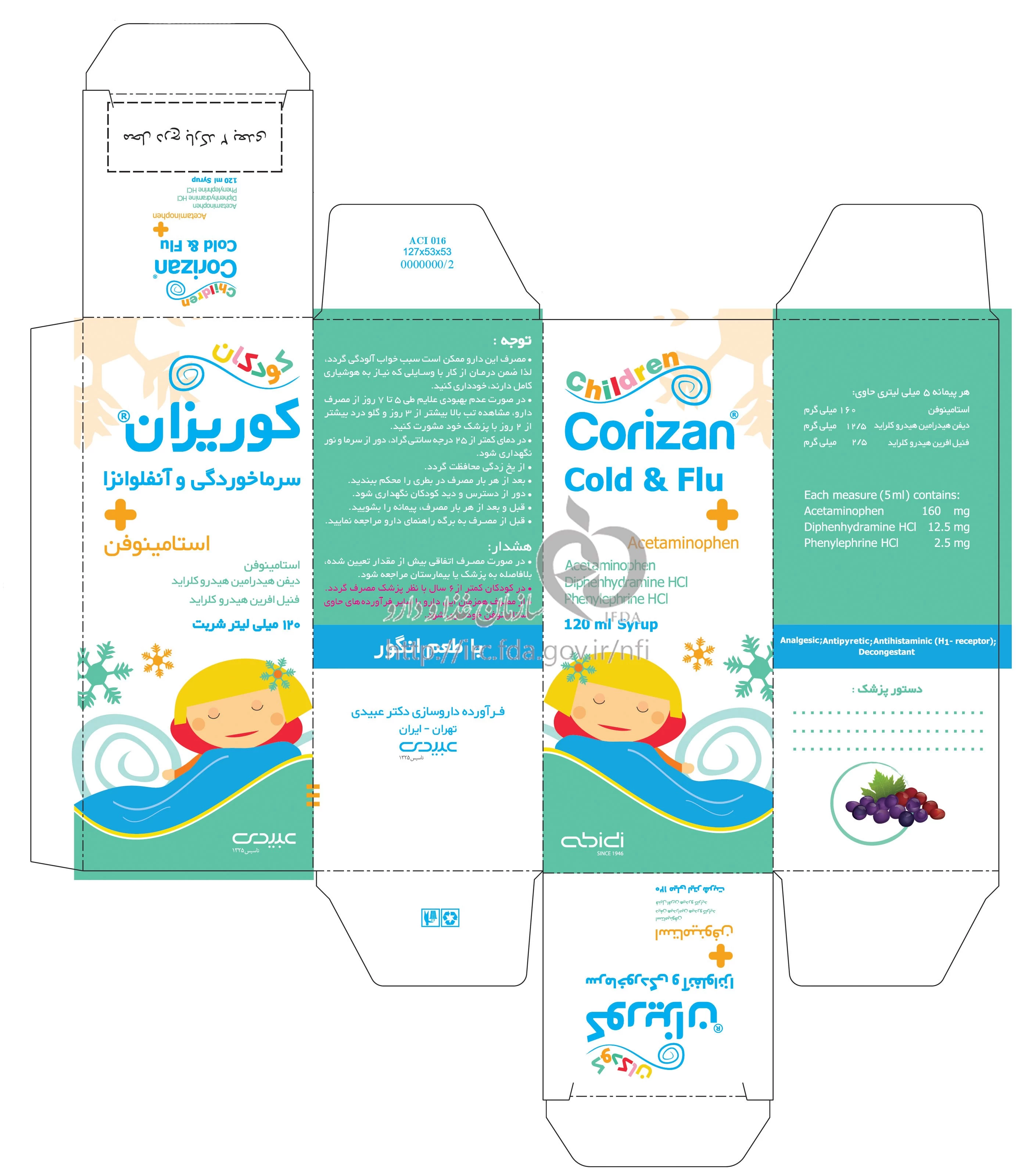 کوریزان کودکان سرماخوردگی و آنفلوانزا شربت خوراکی 160 mg/12.5 mg/2.5 mg/5mL 120MILLILITER