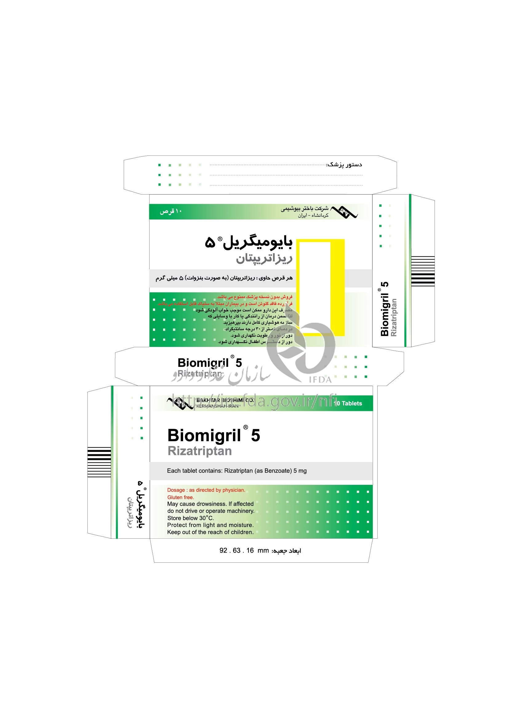 موارد مصرف بایومیگریل قرص خوراکی 5 mg