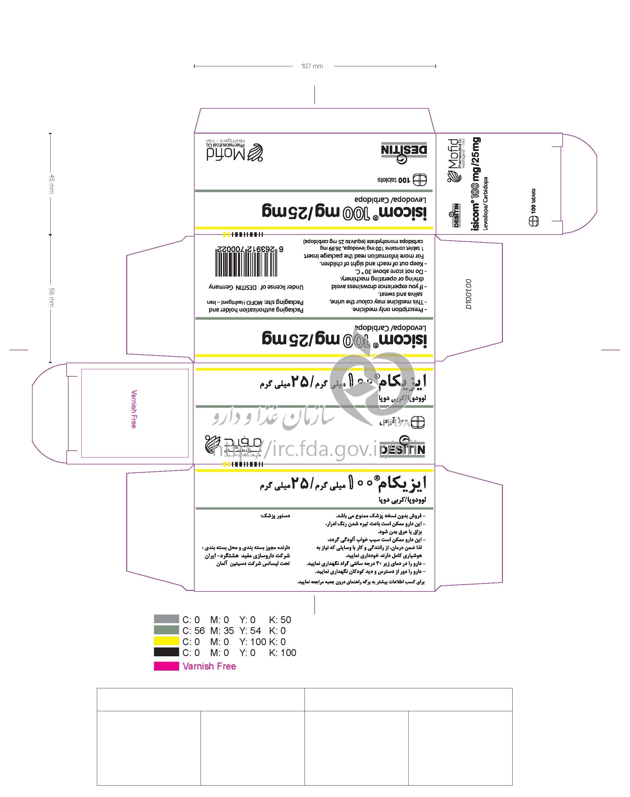 LEVODOPA / CARBIDOPA TABLET ORAL 100 mg/25 mg یک داروی دسته‌ی داروهای ضد پارکینسون است که استفاده آن برای کنترل علائم بیماری پارکینسون مفید است. این دارو با کاهش سطح دوپامین در مغز موجب تسکین علائم بیماری پارکینسون می‌شود. نحوه مصرف این دارو به شکل زیر است: - جرعه اولیه: دو قرص در روز، هر قرص دارای 100 میلی گرم لوودوپا + 25 میلی گرم کاربیدوپا است. - جرعه‌ی مداوم: می‌توان هر ۳ تا ۴ ساعت یک قرص مصرف کرد، اما معمولاً پزشکان تجویز می‌کنند که در ابتدا به دو قرص در روز برسید و سپس به طور مداوم تجویز شده را مصرف نمایید. مصرف این دارو بصورت دوره ای است و باید ترکیبی با داروهای دیگر به نام آنتی کولینرژیک و ماده دهنده‌ی دوپامین باشد. قبل از مصرف این دارو حتما با پزشک خود صحبت کرده و دستورهای وی را رعایت کنید.