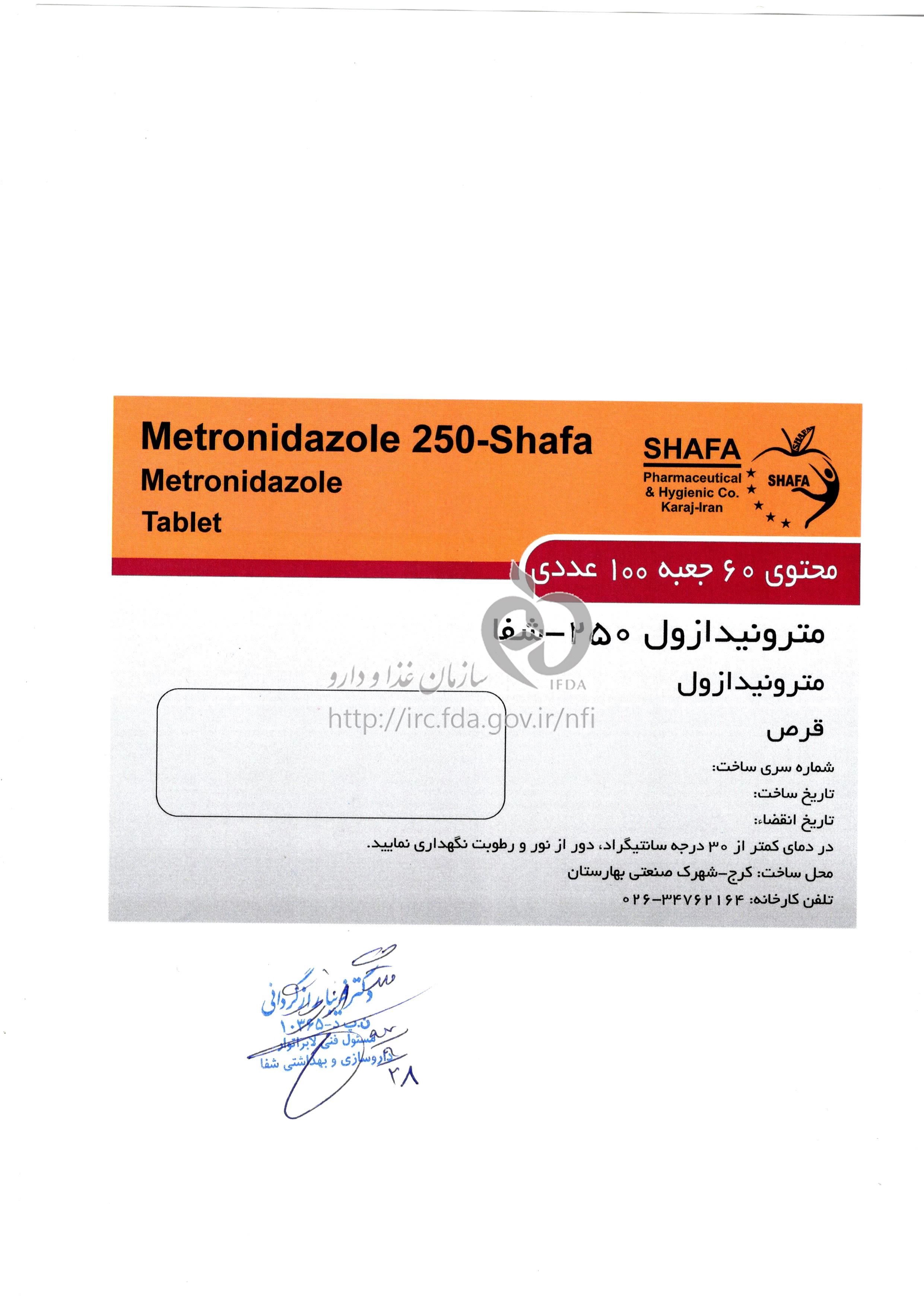 دکترها مترونیدازول - شفا قرص خوراکی 250 mg