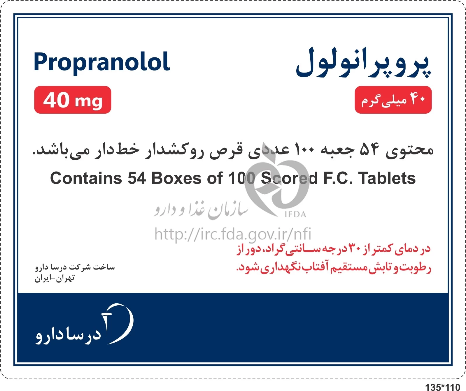 لیست ویدیو ها پروپرانولول قرص خوراکی 40 mg