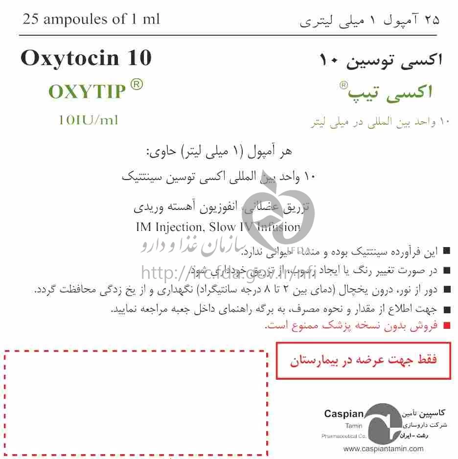 موارد مصرف اکسی تیپ تزریقی پرنترال 10 U/1mL