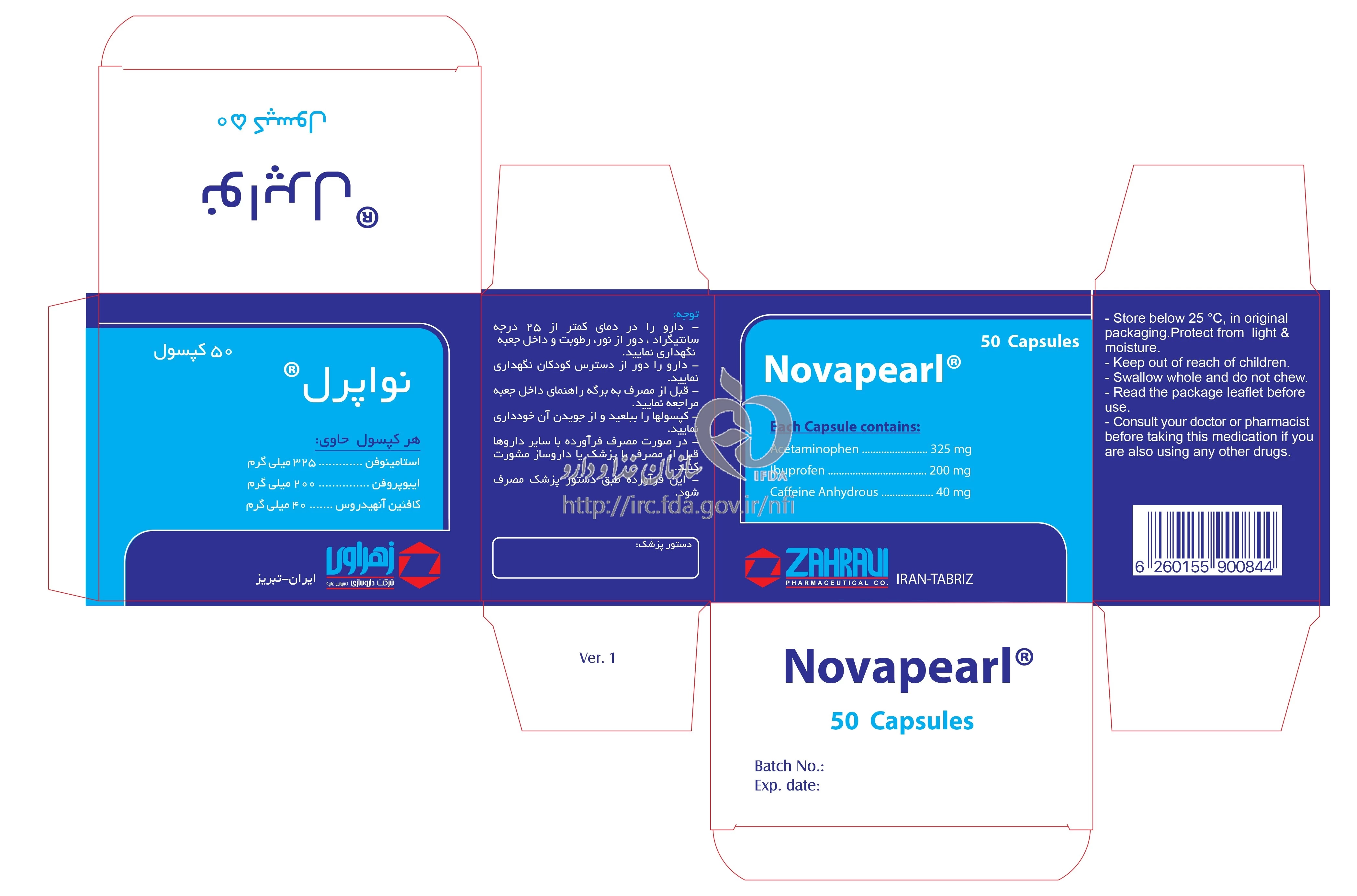 موارد مصرف ، عوارض جانبی ، مصرف بارداری و تداخلات دارویی نواپرل کپسول با روکش ژلاتین خوراکی 325 mg/40 mg/200 mg