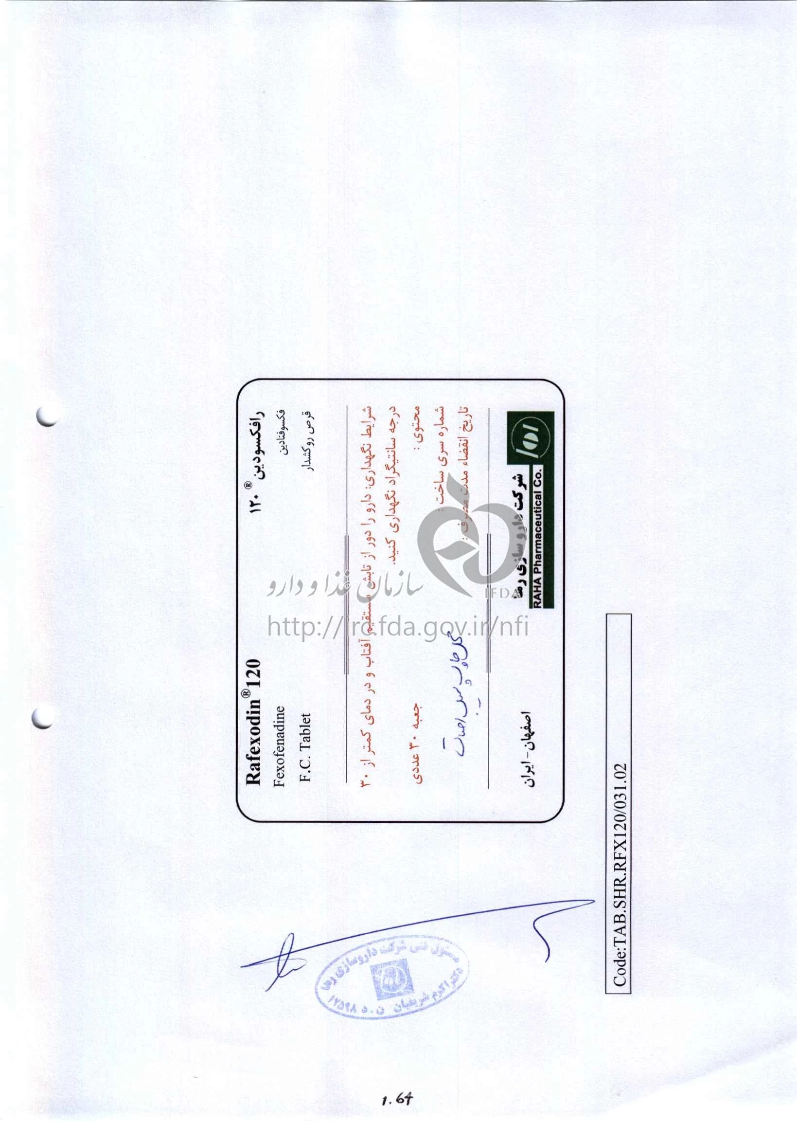 موارد مصرف رافكسودين قرص خوراکی 120 mg