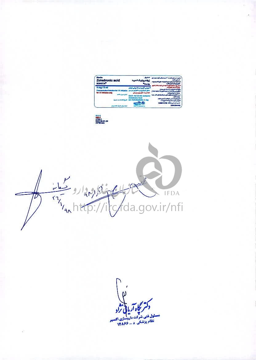 - درمان با بیس فسفونات ‎ها با استئونکروز (عمدتاً چانه) همراه می ‎باشد. معاینه دندان و موارد پیشگیری دندانپزشکی بایستی قبل از تجویز مزمن بیس فسفونات‎ ها در بیماران دارای ریسک فاکتور انجام شود. طی درمان، عملیات تهاجمی دندانپزشکی نباید انجام شود. 2- درد شدید استخوان، مفصل و عضلات به طور غیرشایعی طی درمان با بیس فسفونات‎ ها گزارش شده است. علائم معمولاً پس از قطع دارو از بین می ‎روند. 3- دارو بایستی در صورت وجود نارسایی کلیه با احتیاط مصرف شده و تنظیم مقدار مصرف ضروری است.4- در بیماران مبتلا به آسم، اختلال عمل کبد و در افراد مسن با احتیاط فراوان تجویز شود.