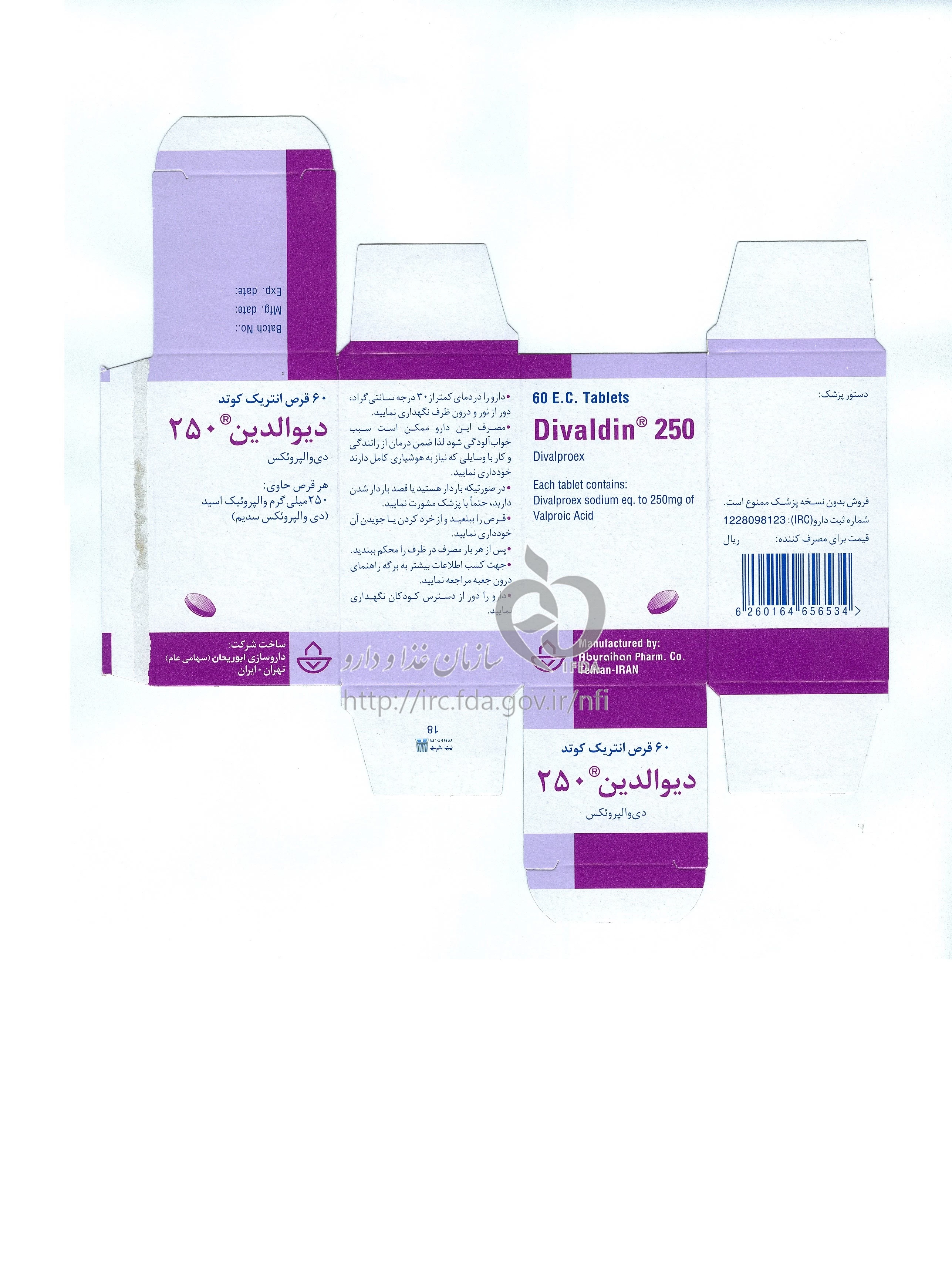 دیوالدین قرص انتریک کوتد خوراکی 250 mg