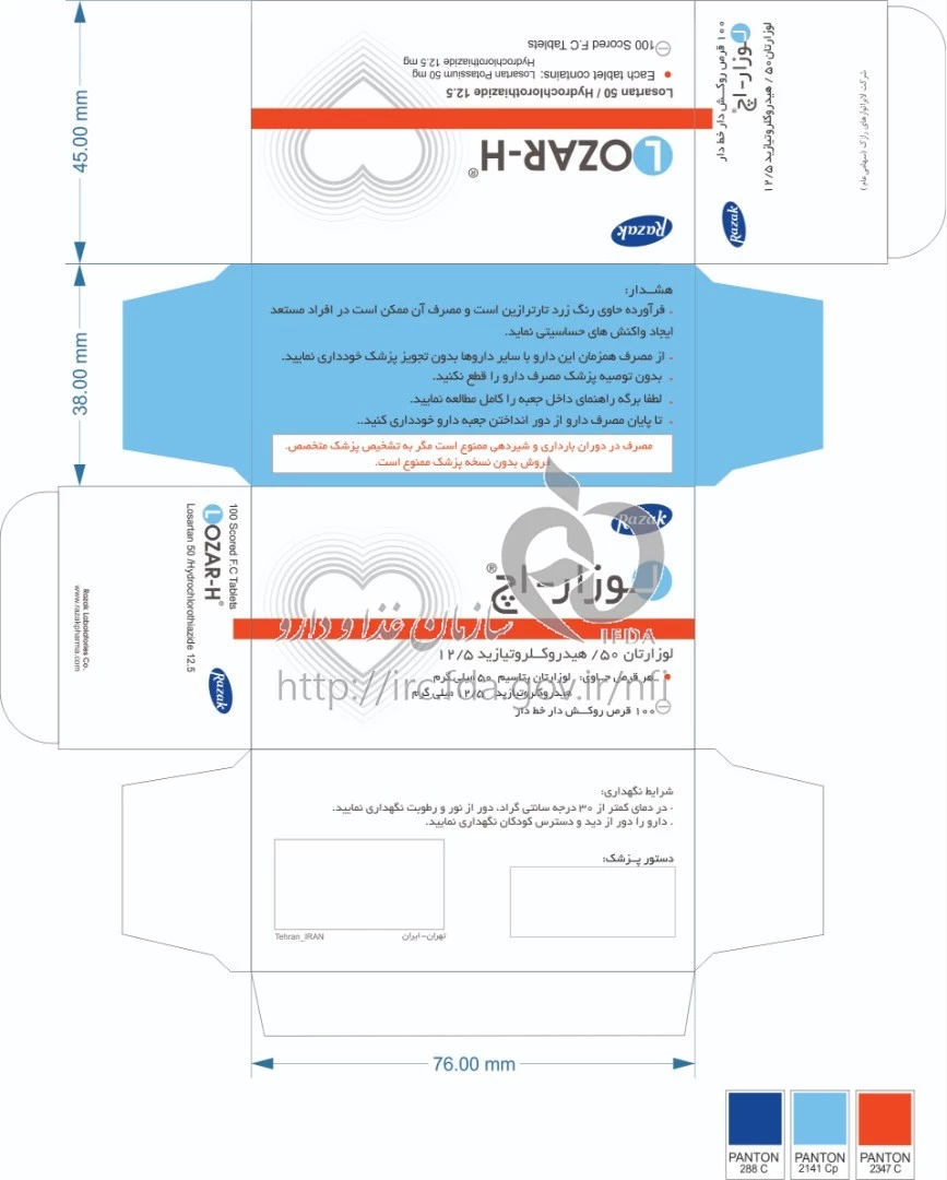 موارد مصرف ، عوارض جانبی ، مصرف بارداری و تداخلات دارویی لوزار اچ قرص خوراکی 50 mg/12.5 mg