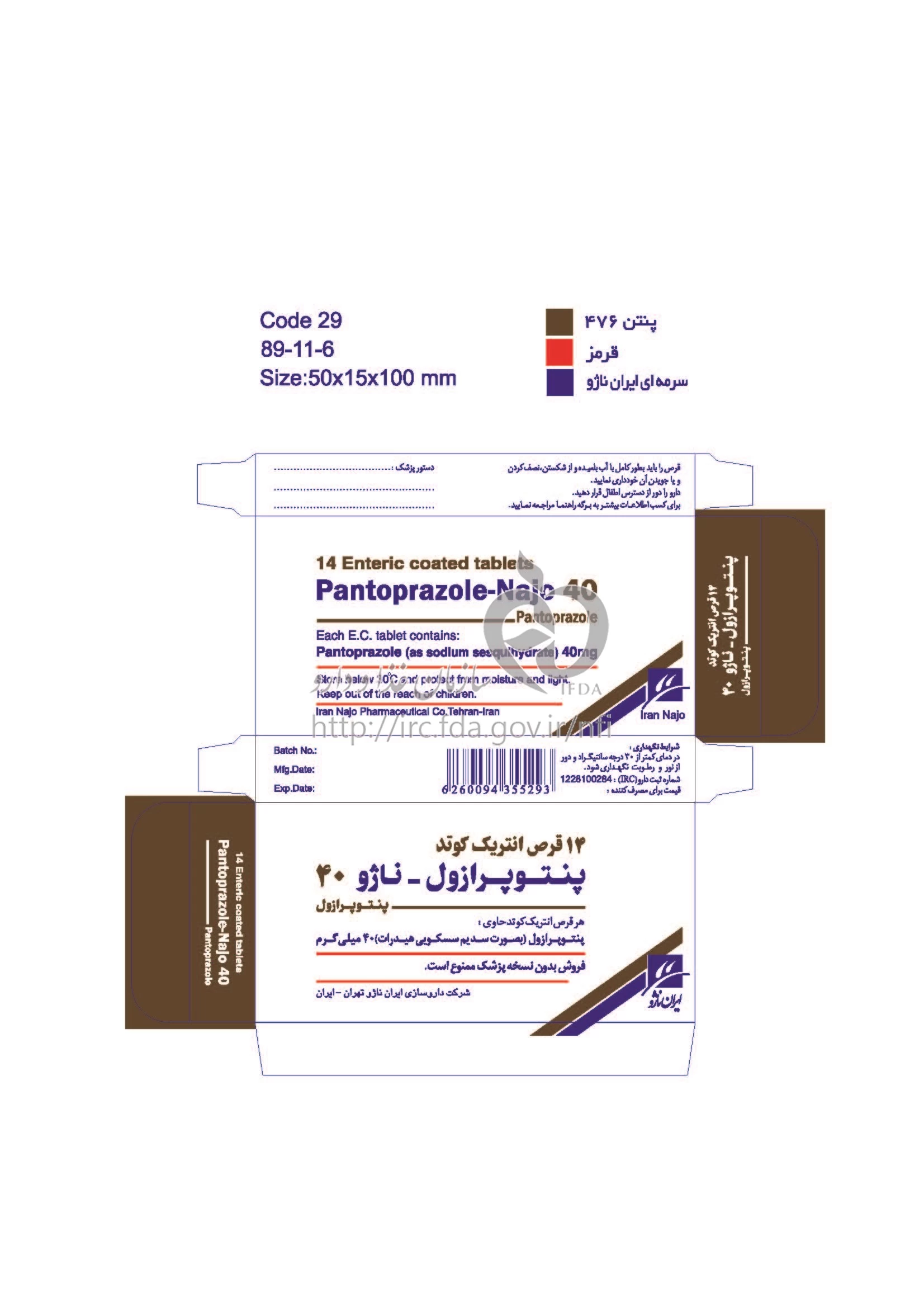 پنتوپرازول - ناژو قرص انتریک کوتد خوراکی 40 mg