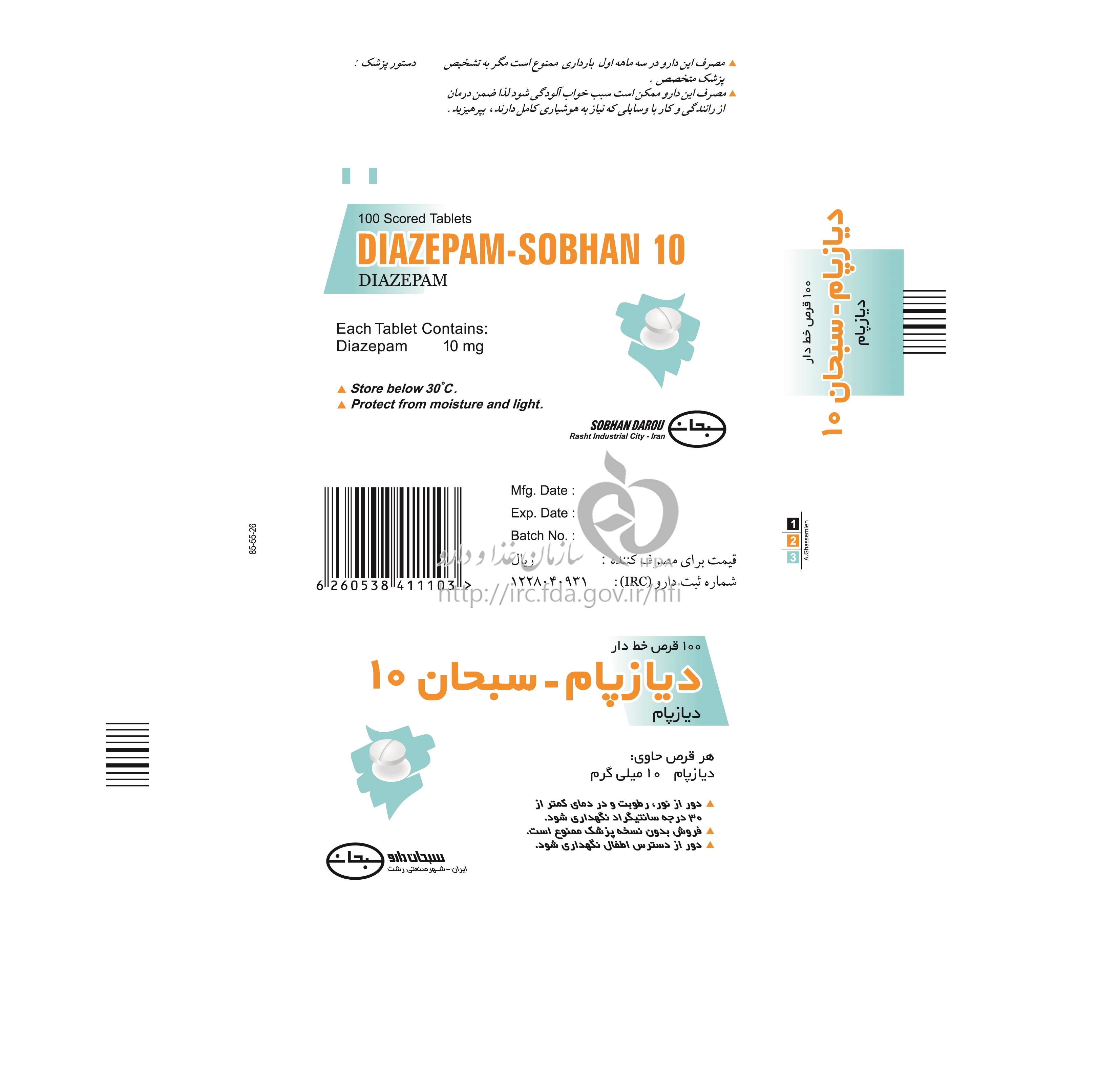 موارد مصرف دیازپام - سبحان قرص خوراکی 10 mg