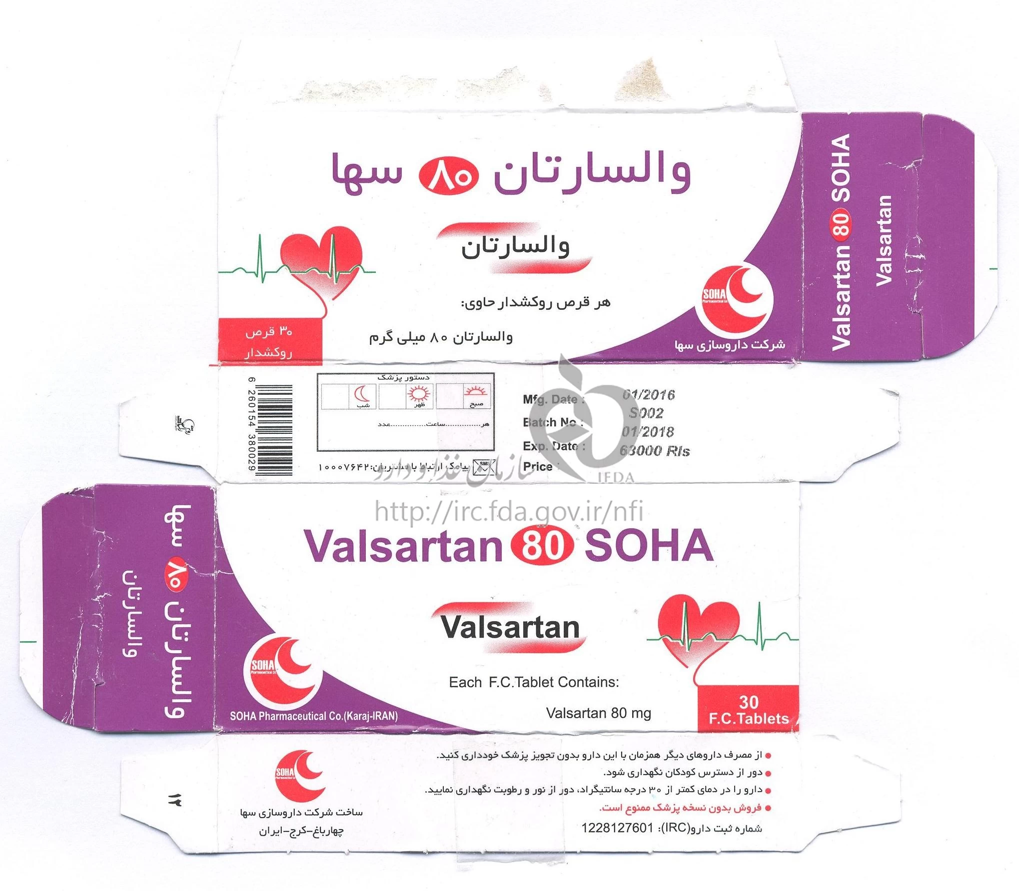 عوارض جانبی والسارتان سها قرص خوراکی 80 mg