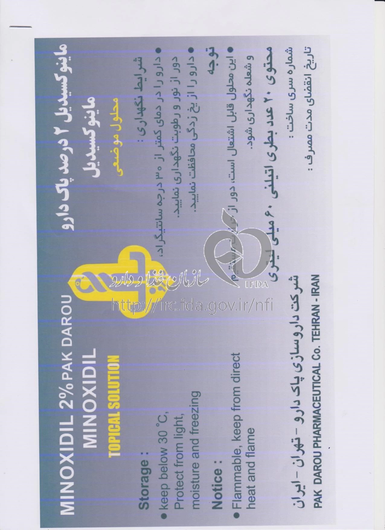 ماینوکسیدیل پاک دارو محلول موضعی 20 mg/1mL 60MILLILITER
