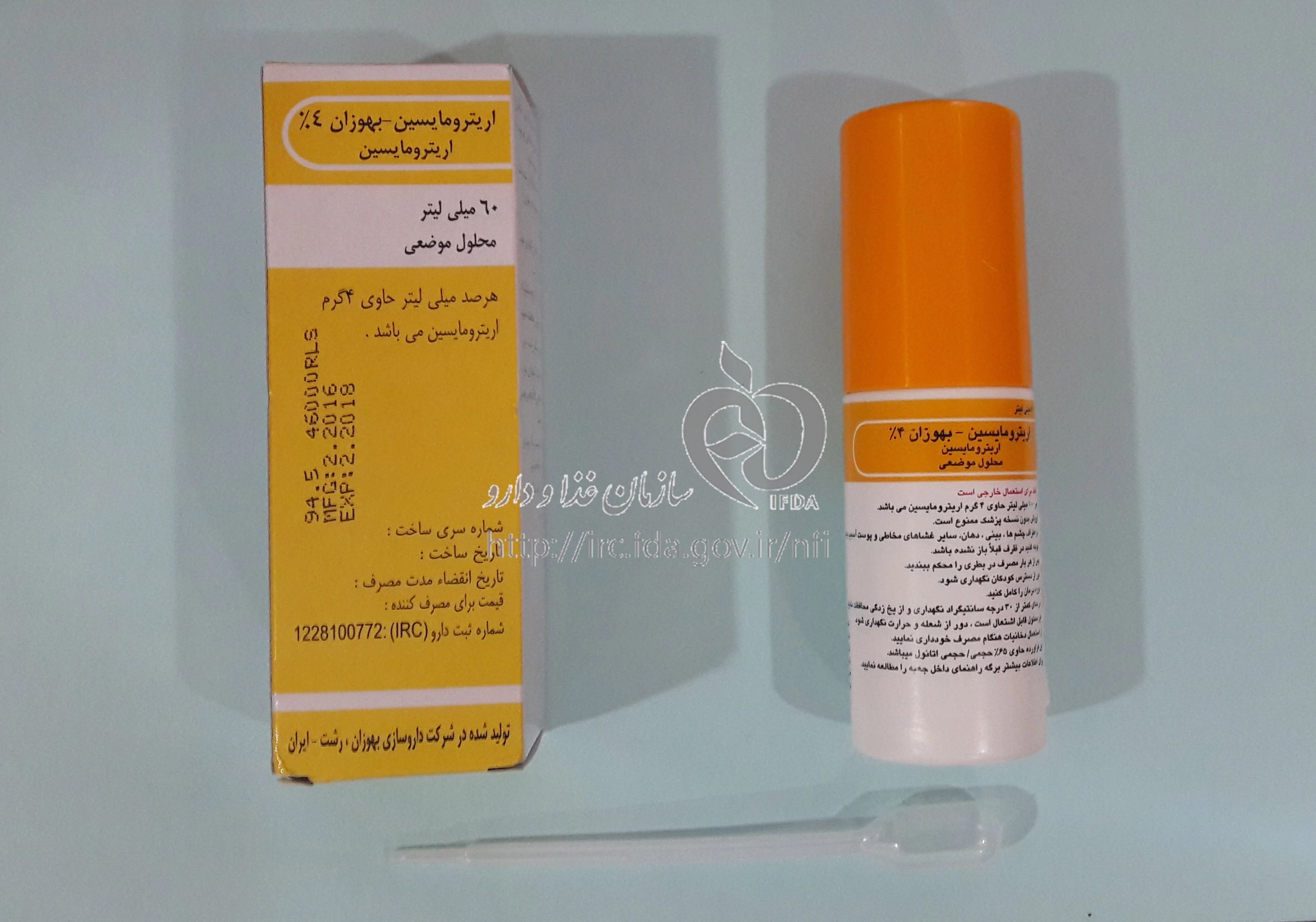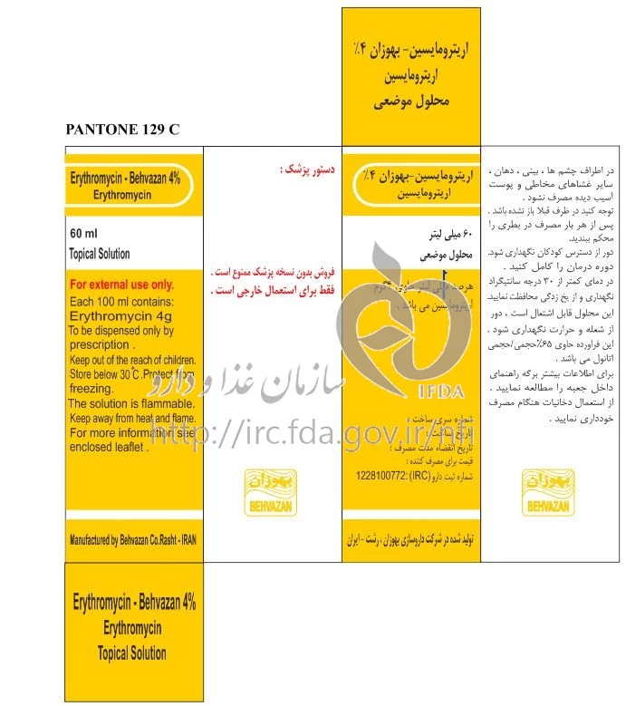 اریترومایسین - بهوزان محلول موضعی 4 % 60MILLILITER