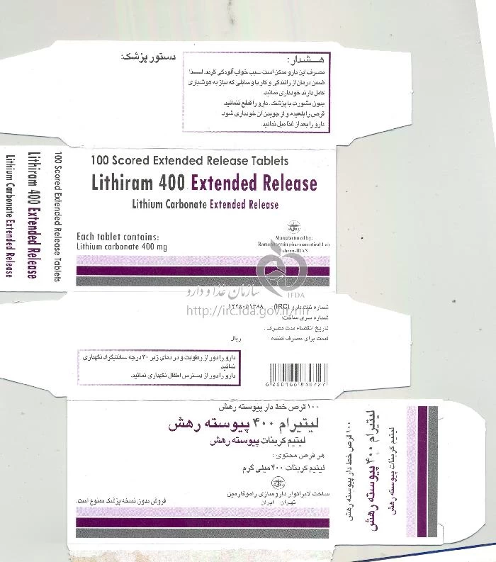 لیتیرام قرص پیوسته رهش خوراکی 400 mg
