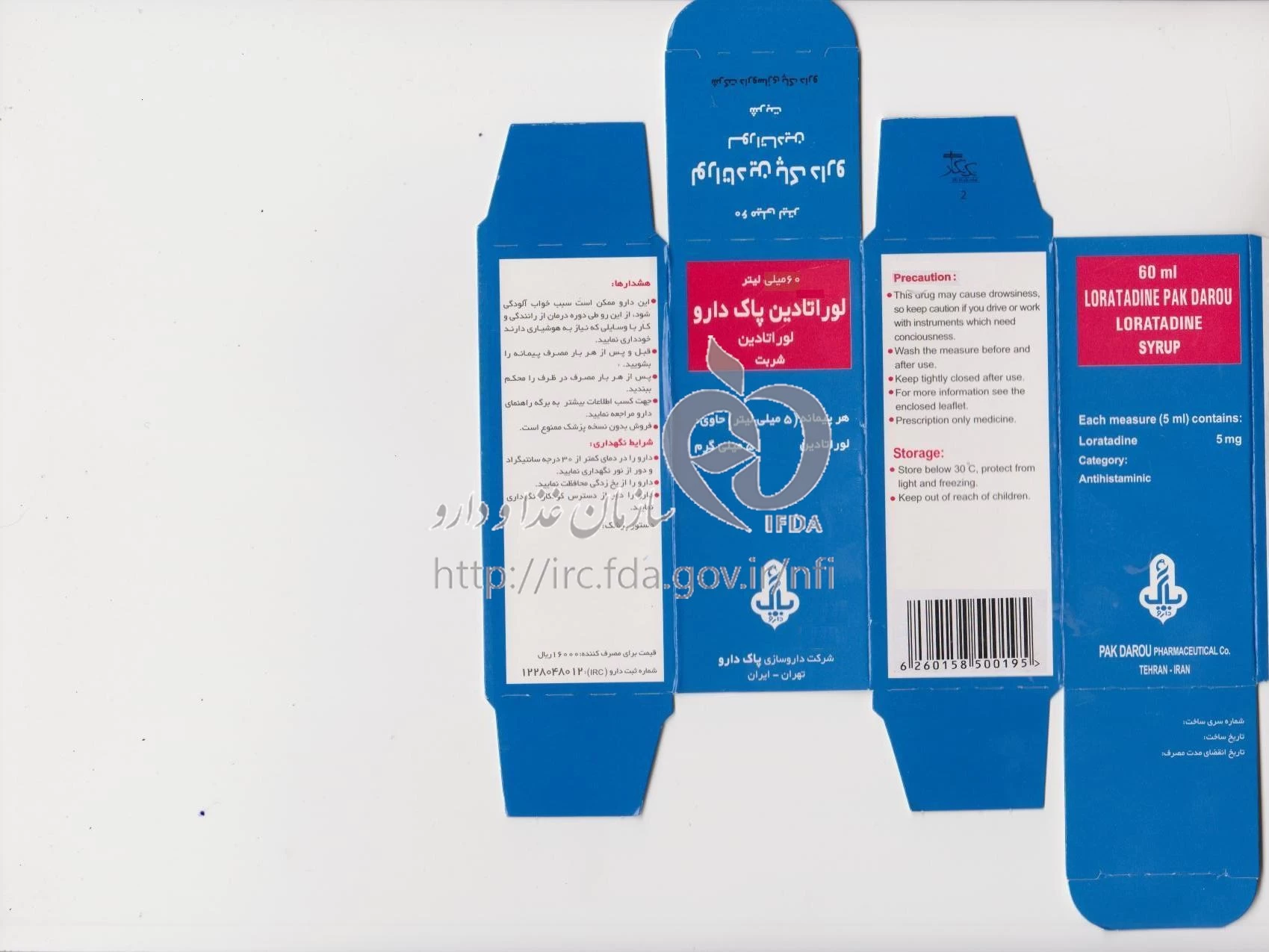 لوراتادین پاک دارو شربت خوراکی 5 mg/5 mL 60MILLILITER