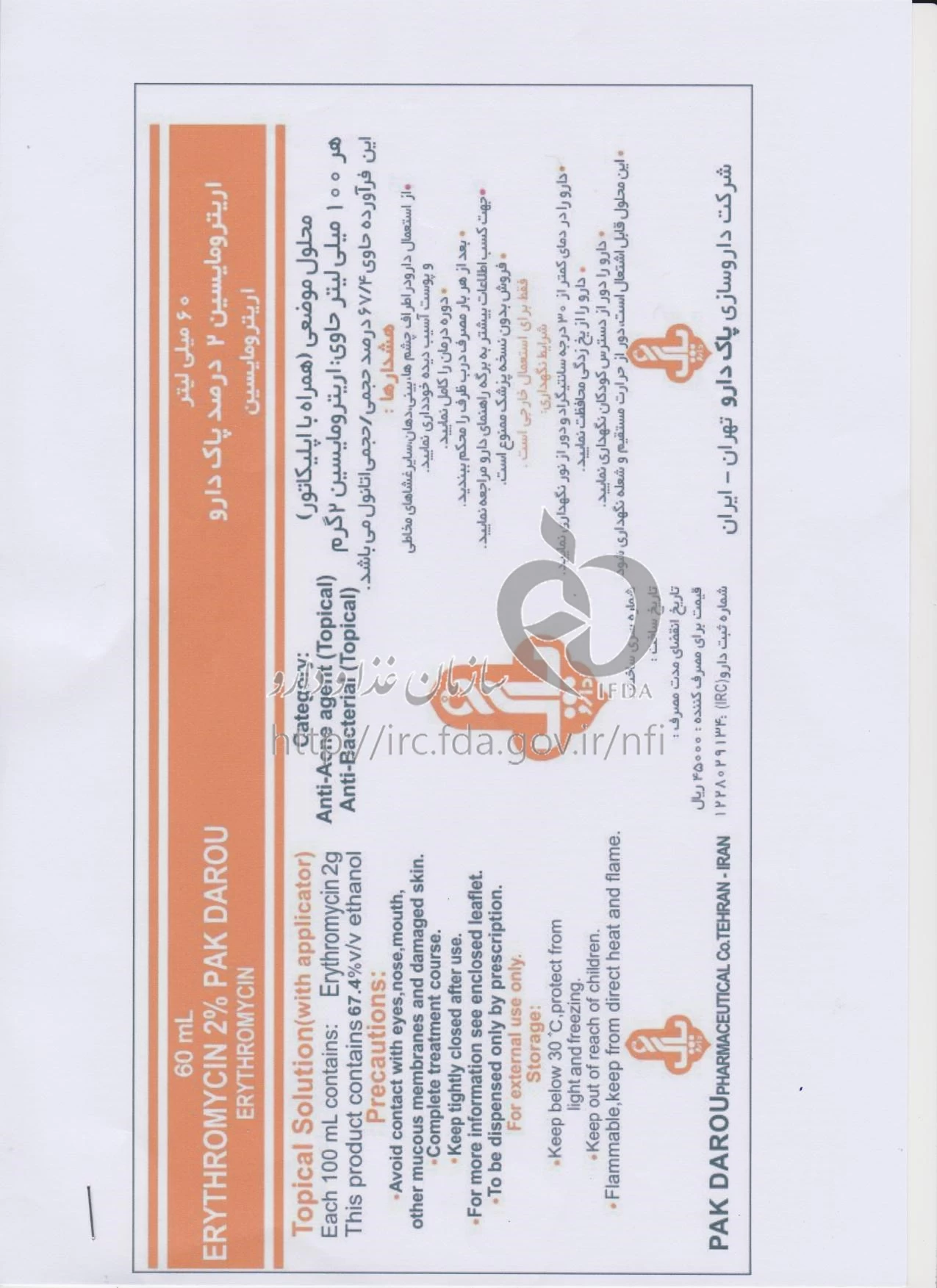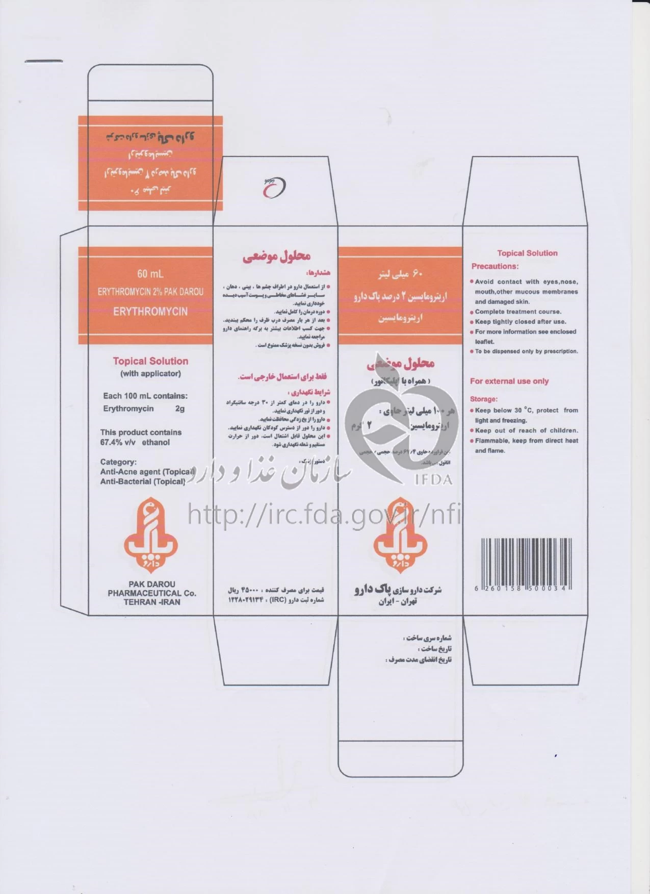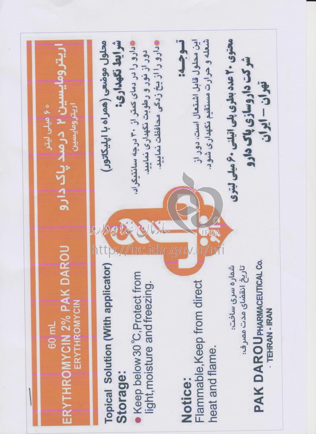 اریترومایسین پاک دارو محلول موضعی 2 % 60MILLILITER