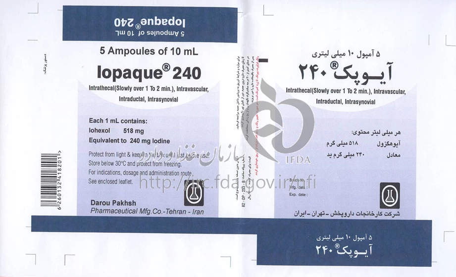 تداخل های دارویی آیوپک تزریقی پرنترال 240 mg/1mL 10MILLILITER