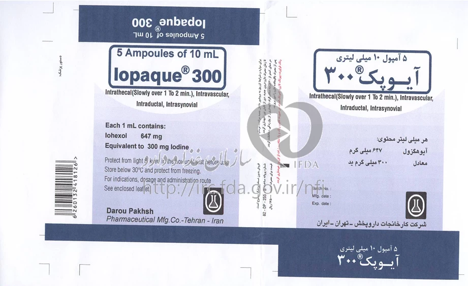 تداخل های دارویی آیوپک تزریقی پرنترال 300 mg/1mL 10MILLILITER