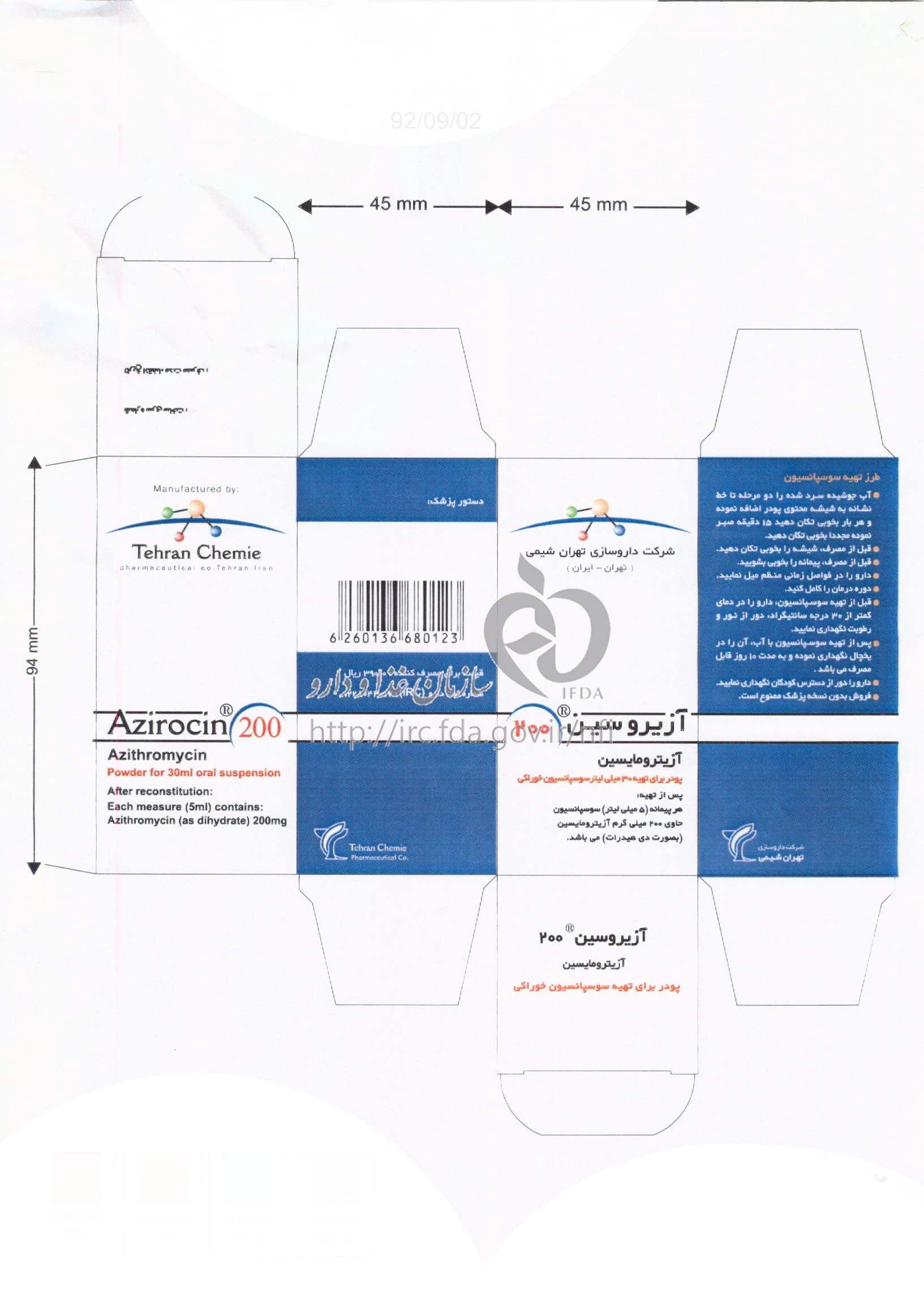 آزیروسین پودر برای تهیه سوسپانسیون خوراکی 200 mg/5mL 30MILLILITER