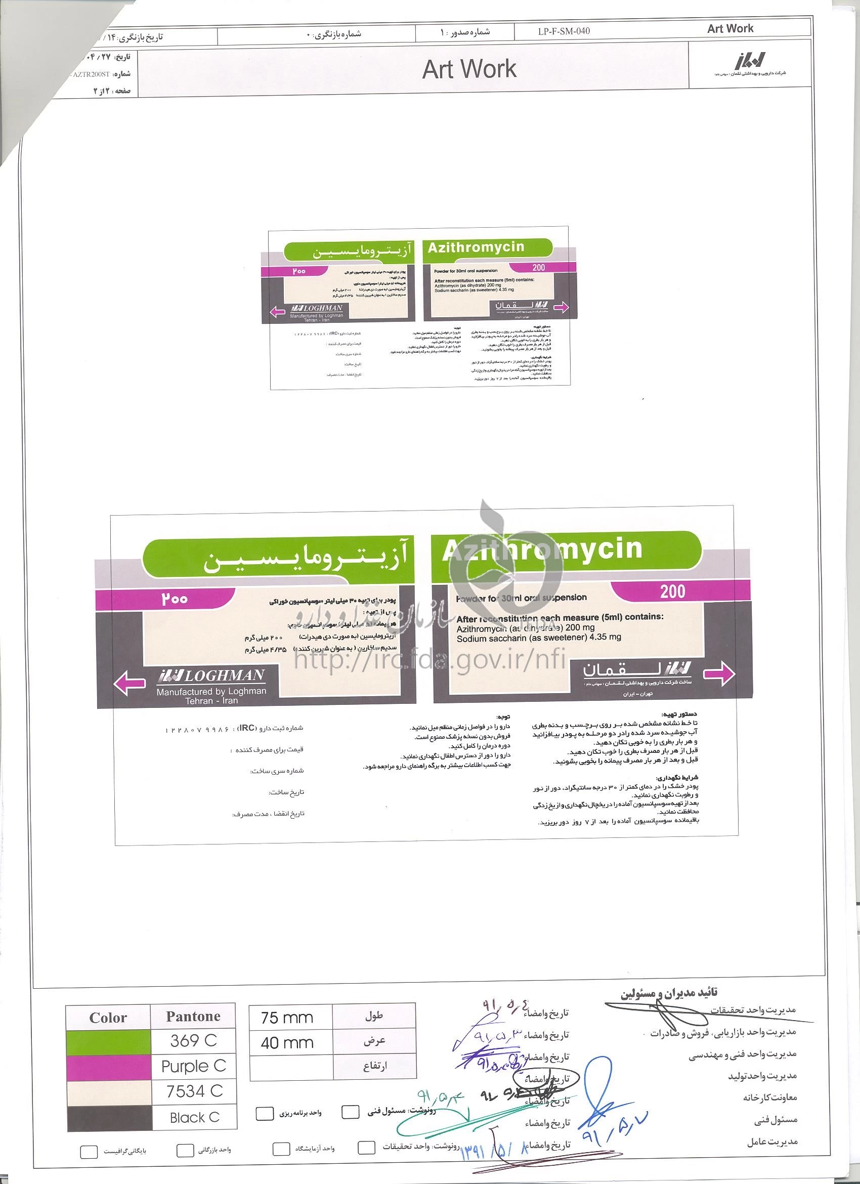 آزیترومایسین پودر برای تهیه سوسپانسیون خوراکی 200 mg/5mL 15MILLILITER