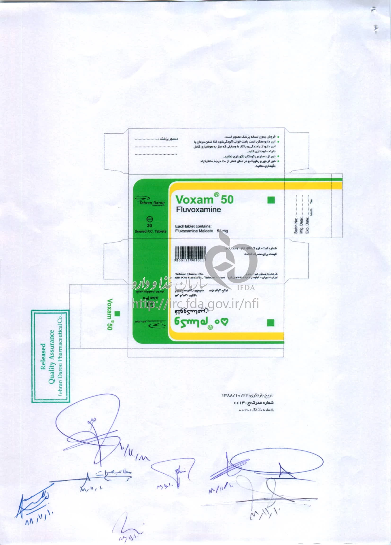1- در صورت مصرف همزمان فلووكسامين با بتابلاکرها، تئوفيلين، كاربامازپين، كلوزاپين، متادون و ديلتيازم مقدارمصرف اين داروها را بايد كاهش داد.2- در بيماران مبتلا به اختلال كبدي، مقدار مصرف دارو را بايد كاهش داد.3- در صورت تجويز بلند مدت اين دارو براي كودكان، بايد پارامتر هاي رشد را كنترل كرد.4- حداقل 14روز فاصله زماني بين مصرف مهاركننده هاي مونوآمين اكسيداز و فلووكسامين بايد در نظر گرفته شود. 5- مصرف اين دارو بايد به تدريج قطع شود. در هر7 -5 روز يك بار، مقدار مصرف را بايد به ميزان 50 میلیگرم كاهش داد.6- برای دستيابي به اثرات درماني دارو ممكن است چند هفته زمان لازم باشد.7- در صورت بروز بثورات پوستي، كهير يا ساير واكنش هاي آلرژیک پوستي به پزشك مراجعه شود.8- به دليل عوارض خواب آلودگي، اختلال بينايي و اختلال در فكركردن هنگام رانندگي يا انجام كار هايی كه نياز به هوشياري و دقت دارند بايد احتياط كرد.