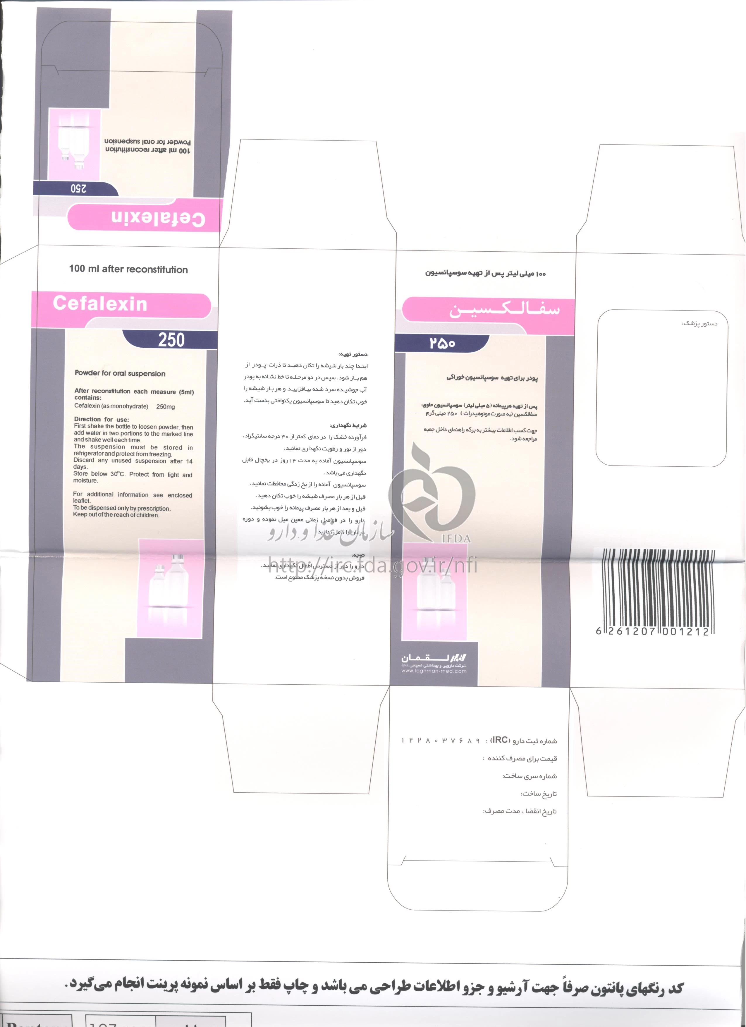 سفالکسین پودر برای تهیه سوسپانسیون خوراکی 250 mg/5 mL 100MILLILITER