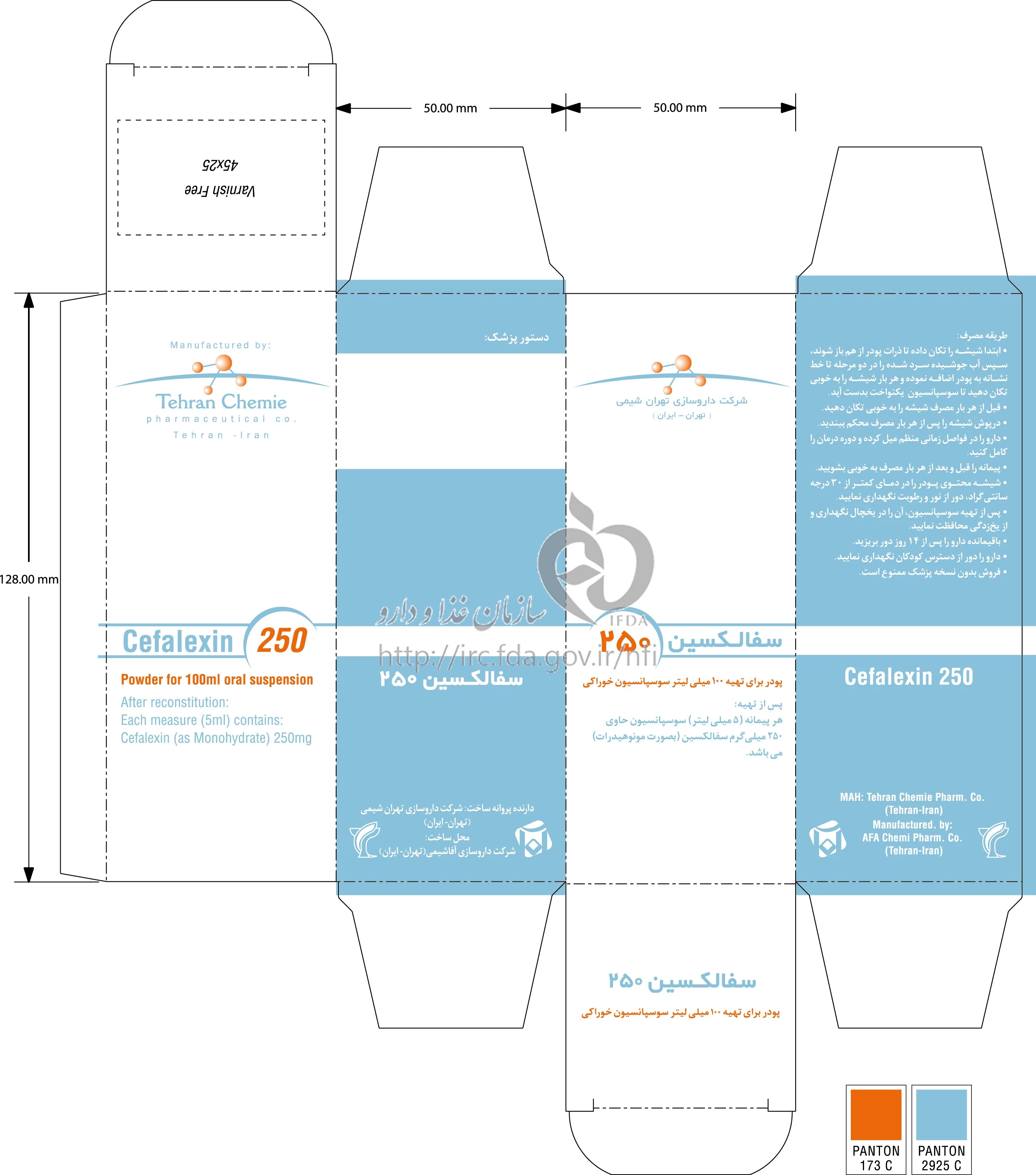 سفالکسین 250 پودر برای تهیه سوسپانسیون خوراکی 250 mg/5 mL 100MILLILITER