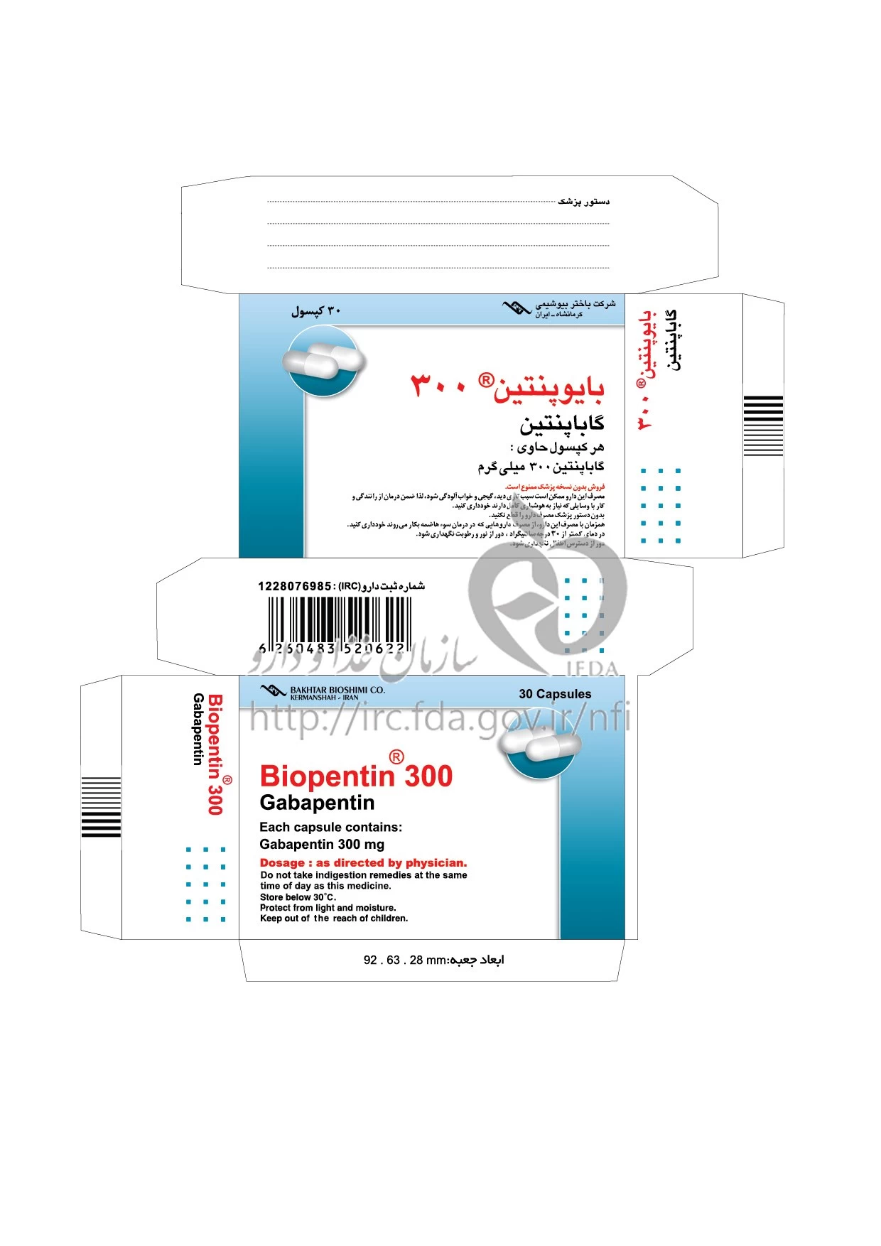 بایوپنتین کپسول خوراکی 300 mg