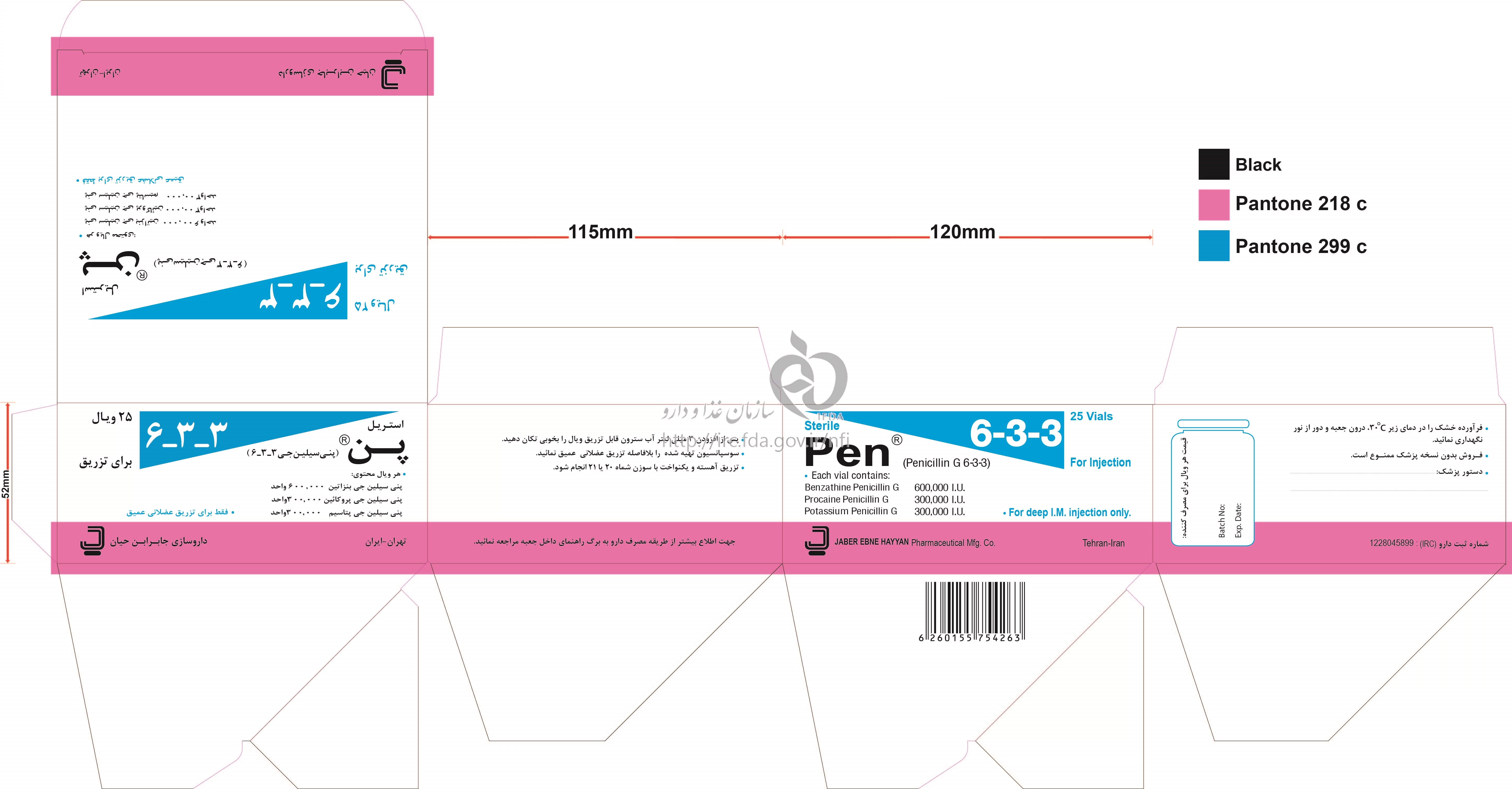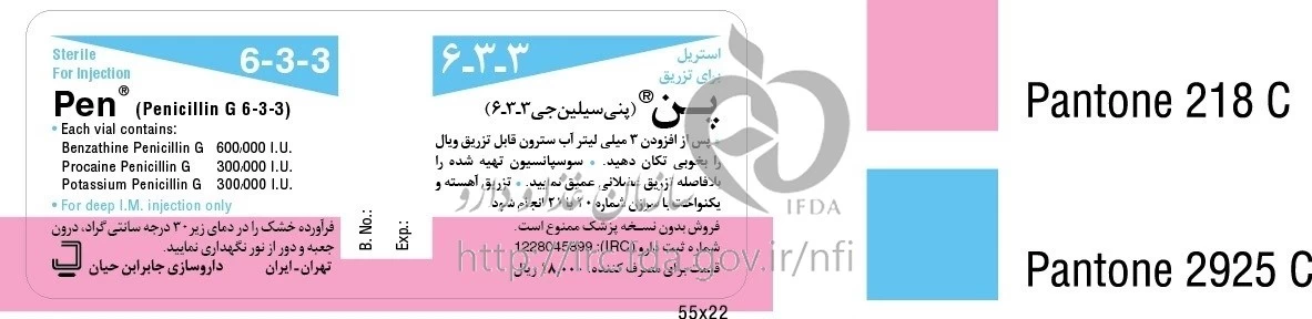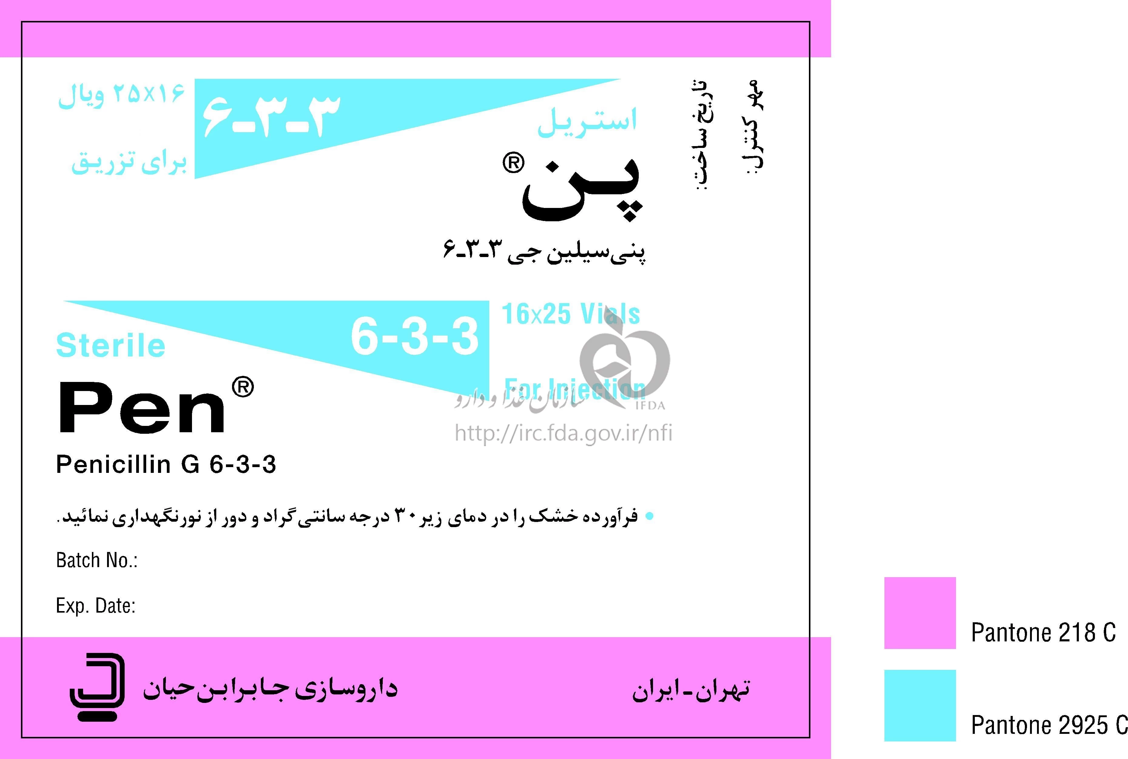 پنی سیلین 6-3-3 یک آنتی‌بیوتیک از خانواده پنی سیلین‌ها است که برای درمان عفونت‌های باکتریایی قابل استفاده است. این دارو به صورت وریدی به بیمار تزریق می‌شود و معمولاً برای درمان عفونت‌های تنفسی، عفونت‌های دستگاه ادراری، عفونت‌های پوستی و گلودرد استفاده می‌شود. مصرف این دارو باید توسط پزشک تجویز شود و دستورالعمل‌های مصرف دقیق باید به دقت رعایت شود. همچنین باید توجه داشت که پنی سیلین باید در دستور پزشک و با توجه به دستورالعمل‌های مصرف نسخه اصلی تجویز شود.