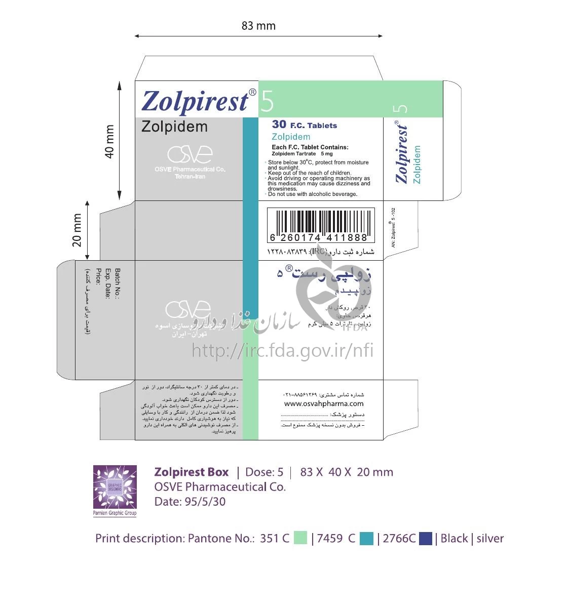 داروی ZOLPIDEM TABLET ORAL 5 mg یک داروی آرام‌بخشی است که برای کمک به بیماران با درد ناشی از بی‌خوابی استفاده می‌شود. این دارو برای کاهش نشانه‌های اضطراب و بهبود کیفیت خواب بیمار مفید است. از این دارو بعد از مشورت با پزشک معالج می‌توان یکبار در شب مصرف کرد. این دارو برای یک دوره درمانی معمولاً به مدت ۲ هفته استفاده می‌شود. همچنین، بیماران باید در مورد احتیاط‌های مربوط به این دارو، نحوه مصرف، عوارض جانبی و داروهای دیگری که قبلا مصرف کرده‌اند، با پزشک معالج خود صحبت کنند.