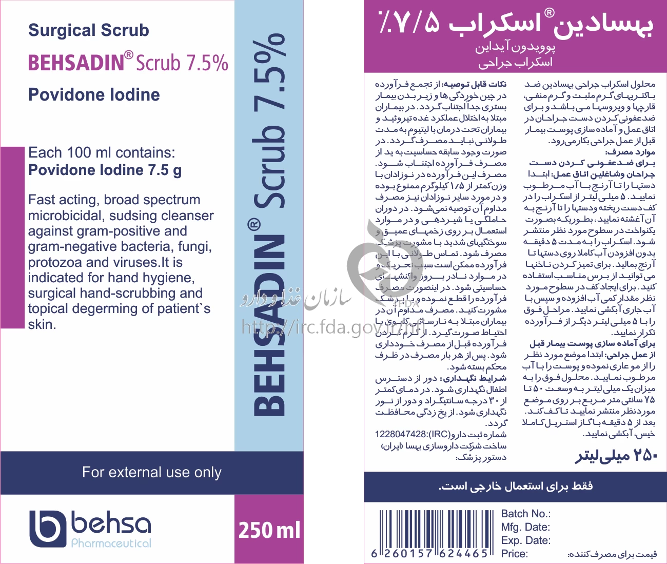 موارد مصرف بهسادین محلول موضعی 7.5 % 250MILLILITER