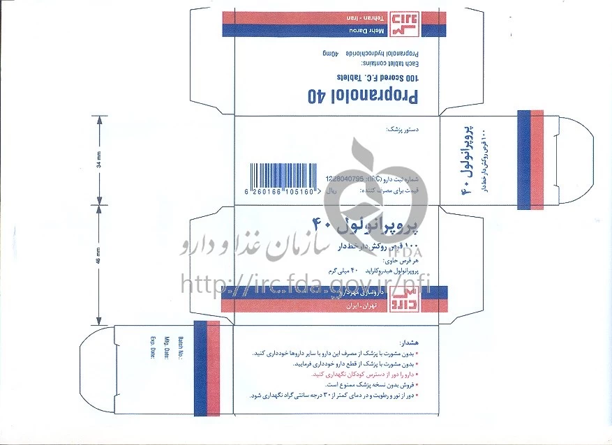 لیست ویدیو ها پروپرانولول قرص خوراکی 40 mg