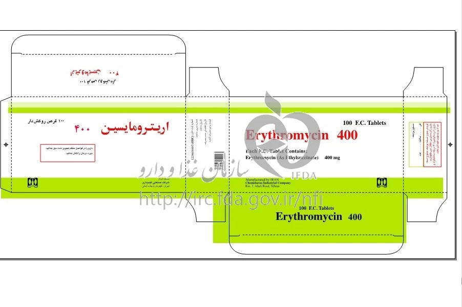 اریترومایسین قرص خوراکی 400 mg