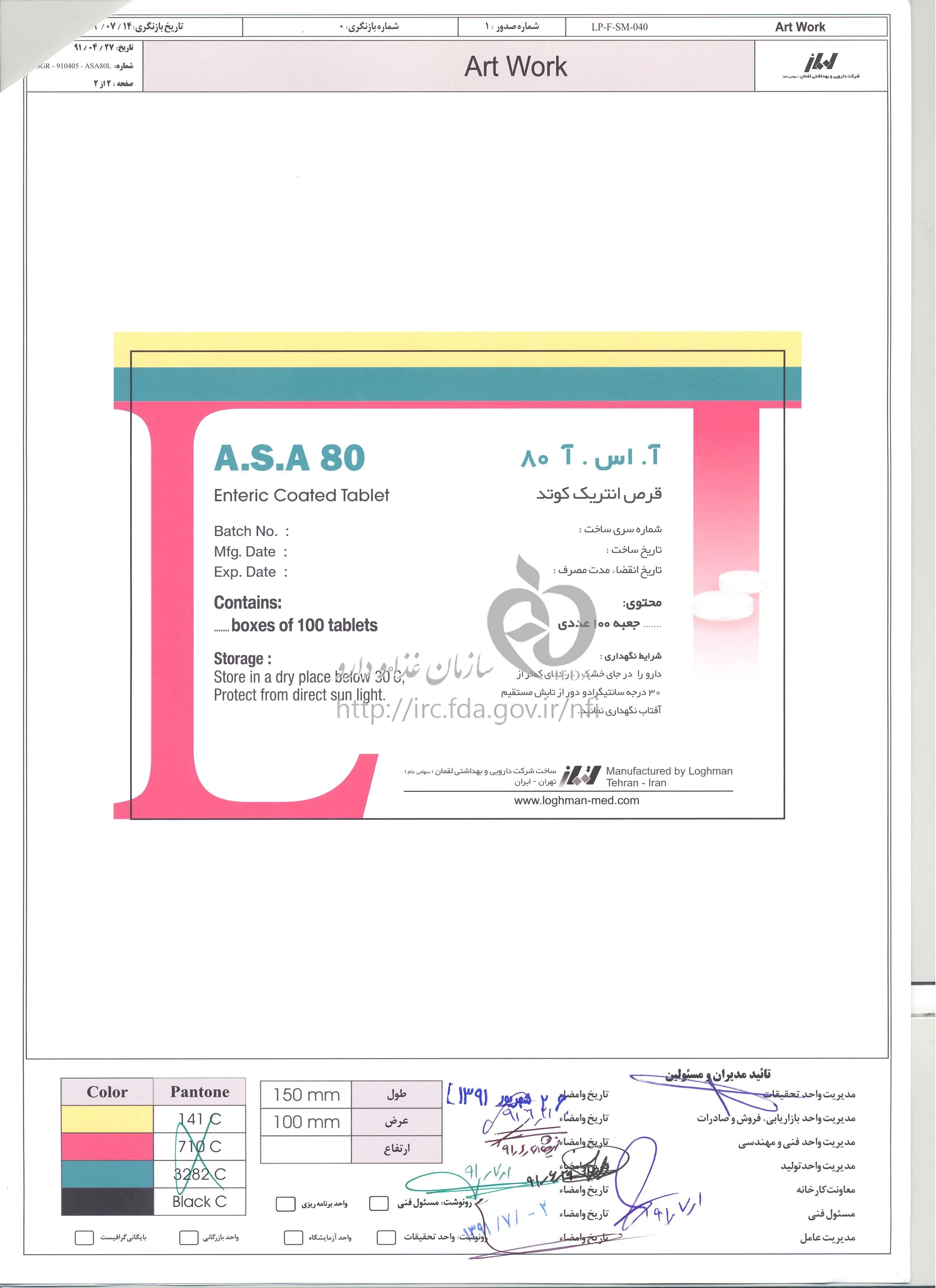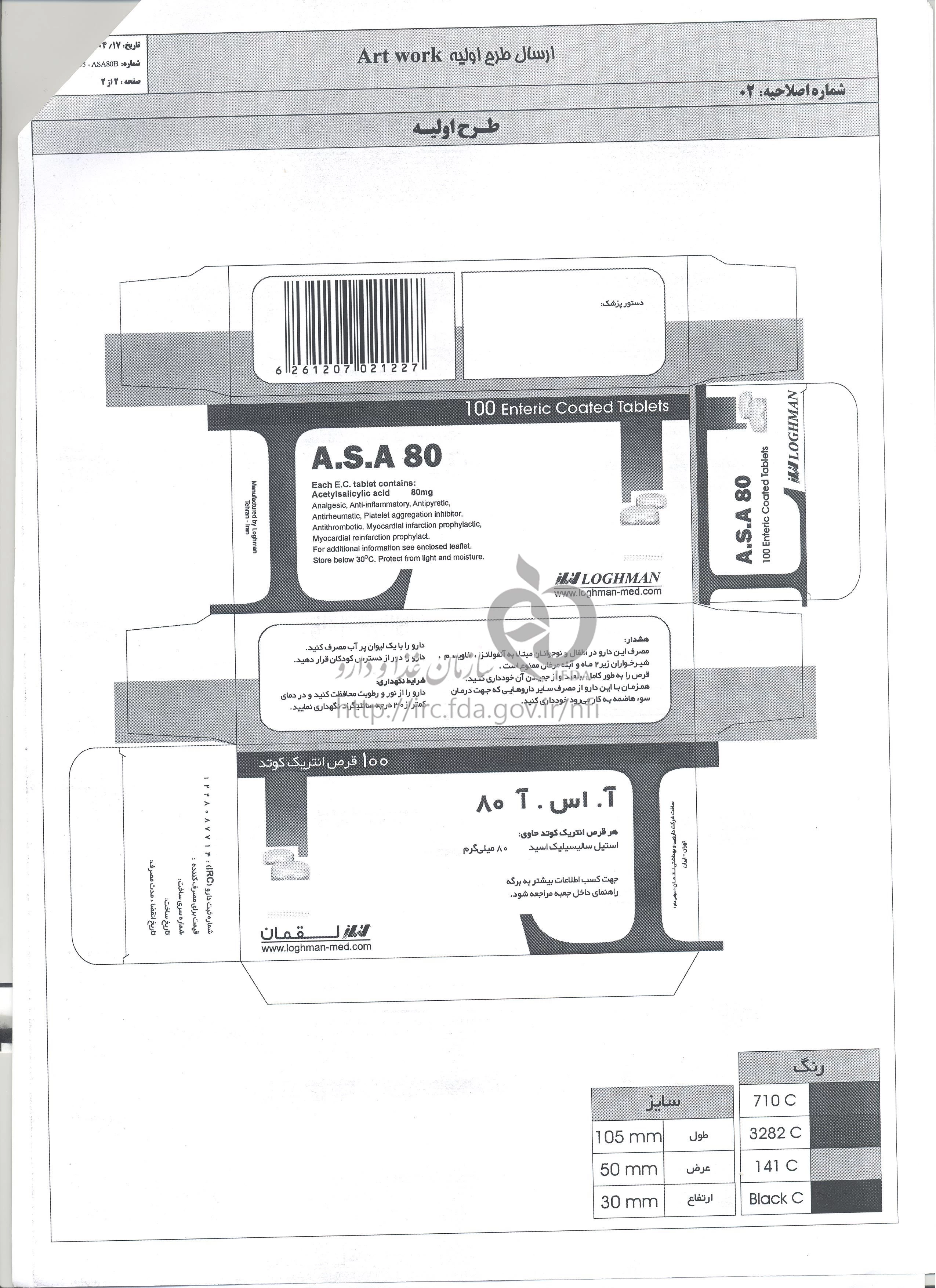 آ اس آ قرص انتریک کوتد خوراکی 80 mg