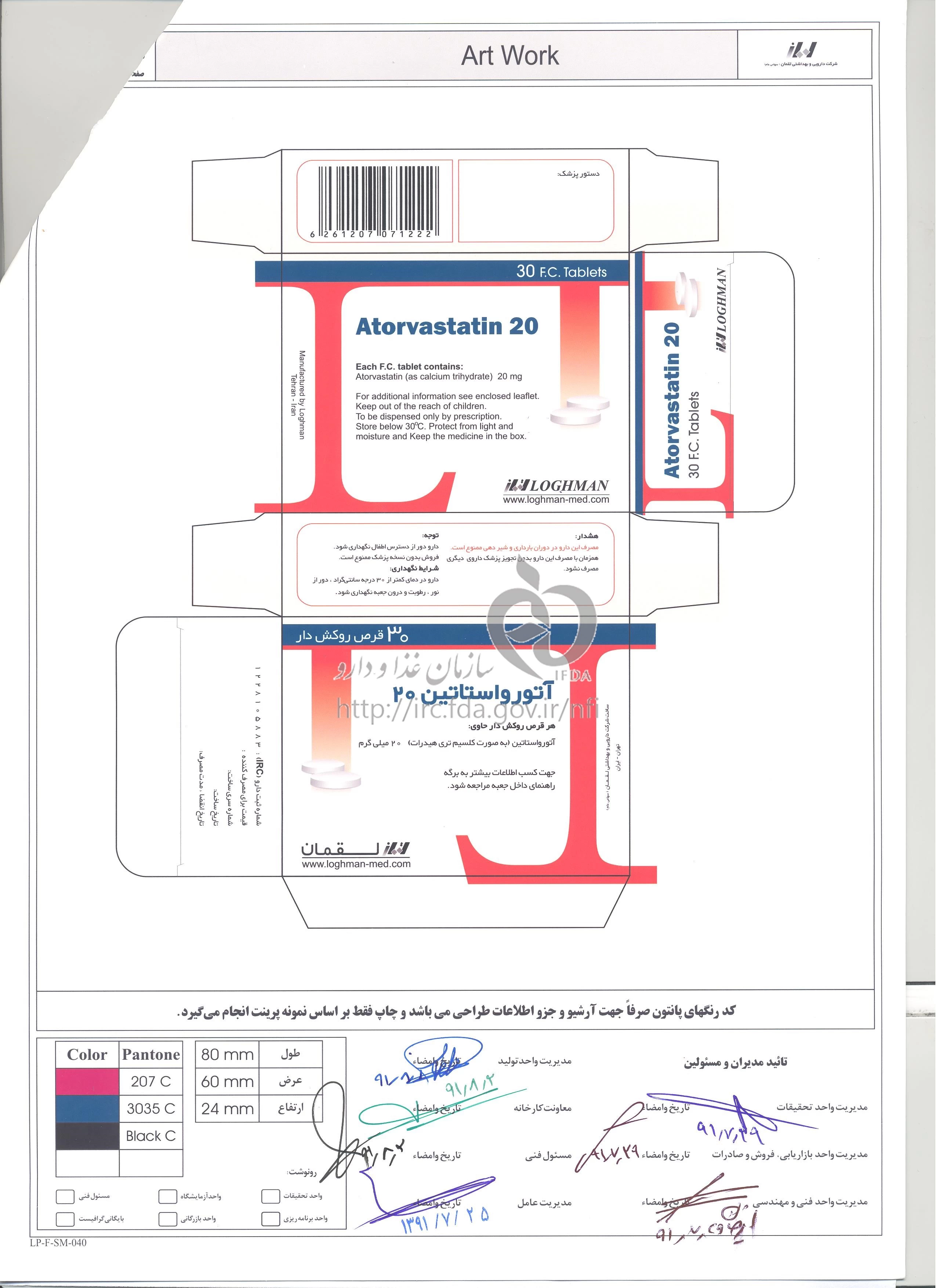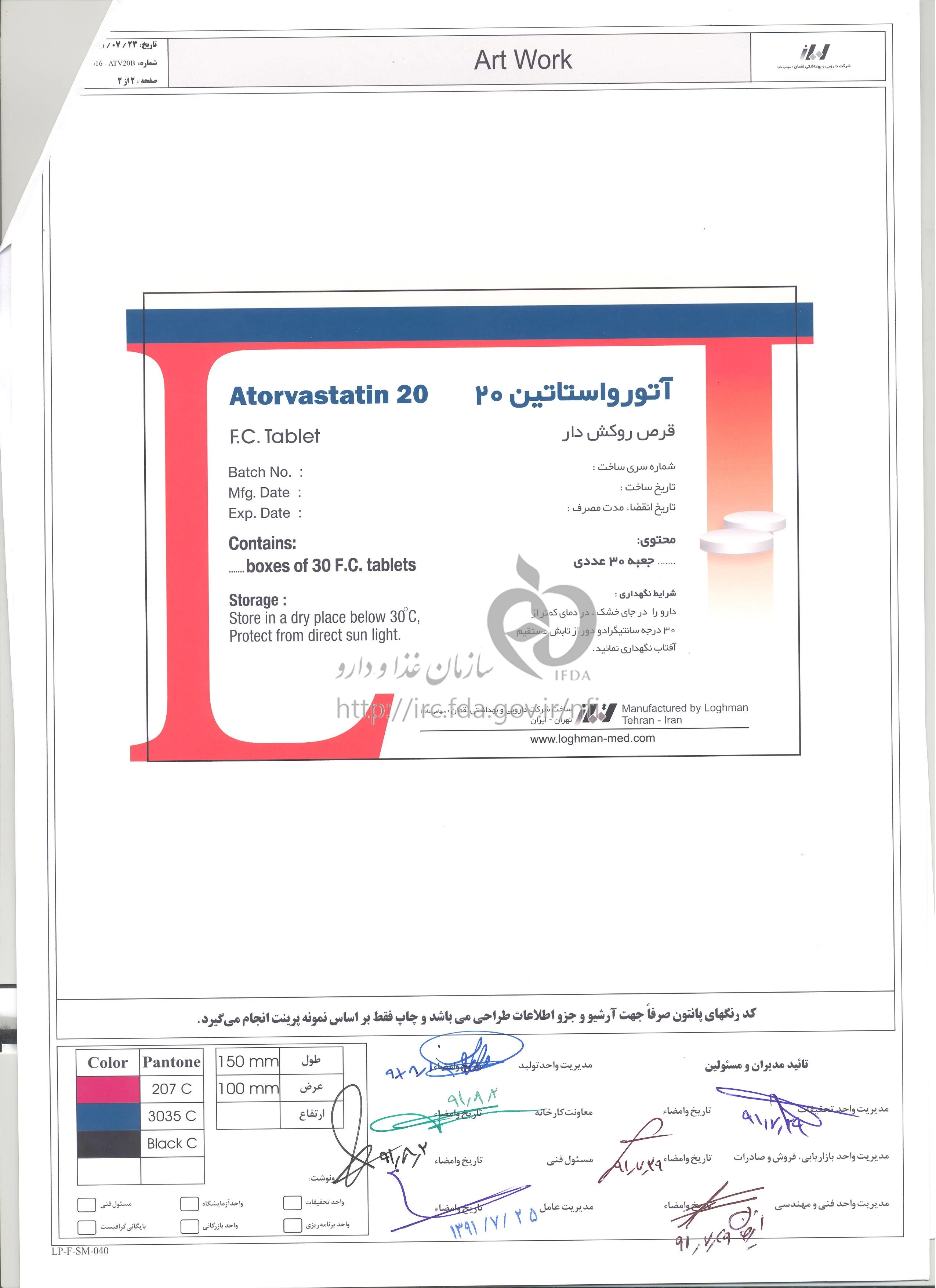 آتورواستاتین قرص خوراکی 20 mg