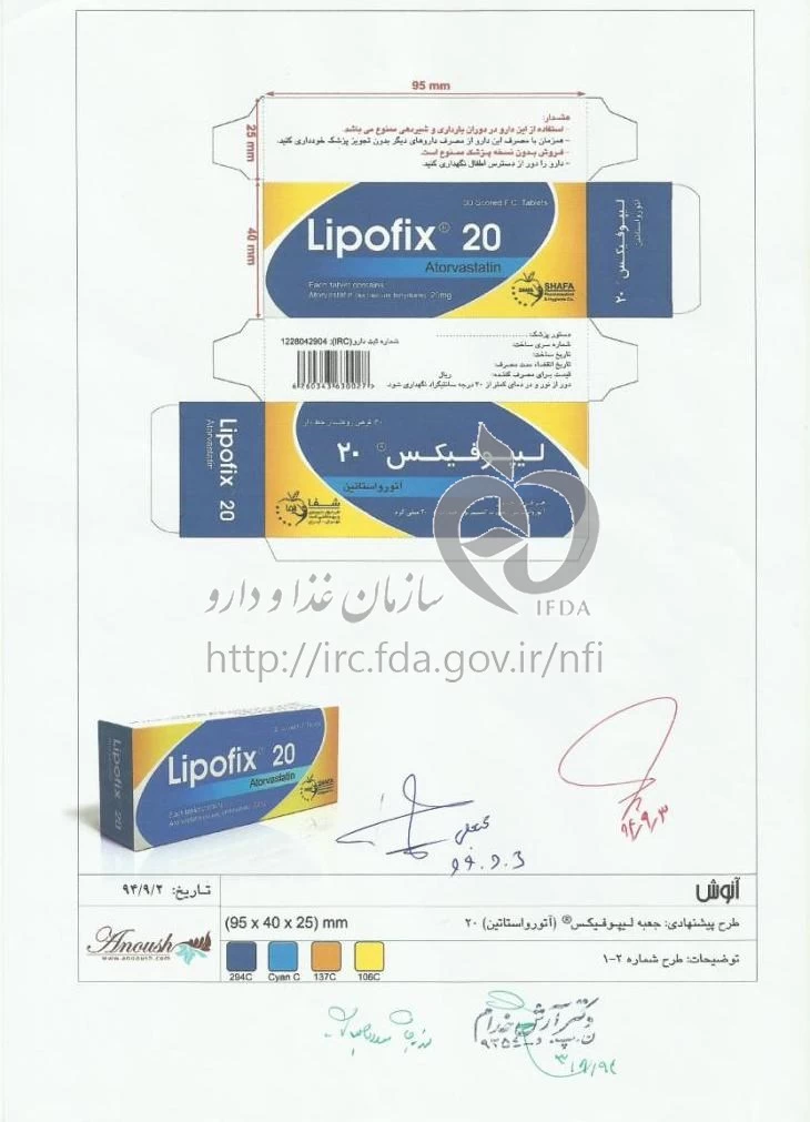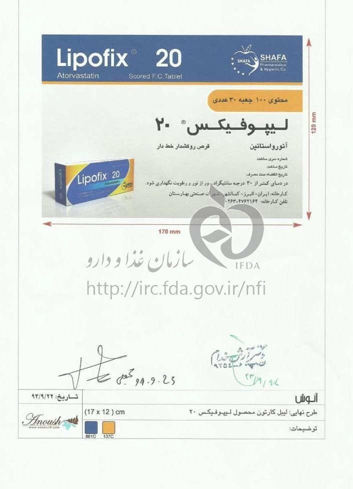موارد مصرف ، عوارض جانبی ، مصرف بارداری و تداخلات دارویی لیپوفیکس قرص خوراکی 20 mg