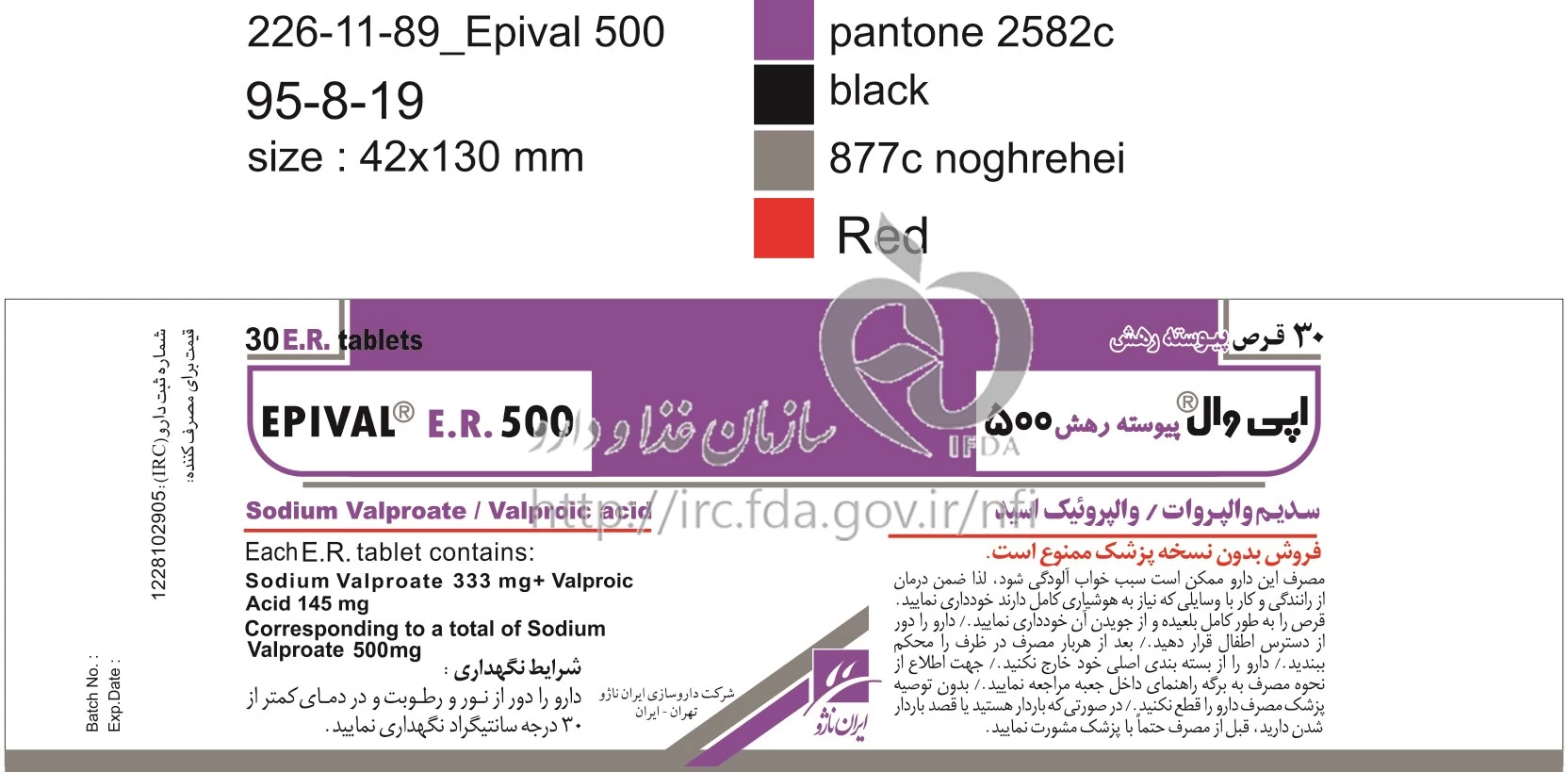 اپی وال قرص پیوسته رهش خوراکی 500 mg