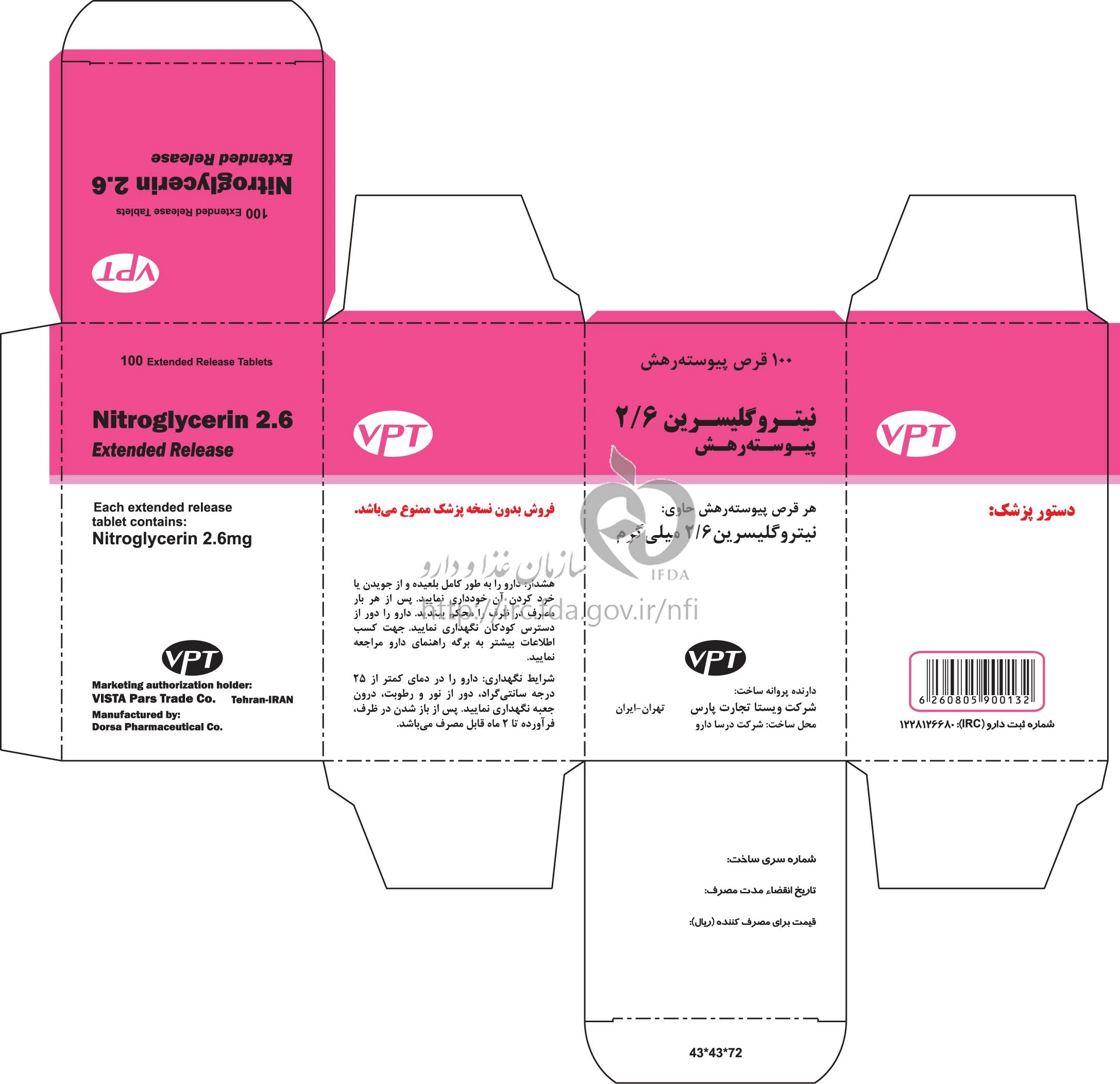 دکترها نیتروگلیسرین قرص پیوسته رهش خوراکی 2.6 mg
