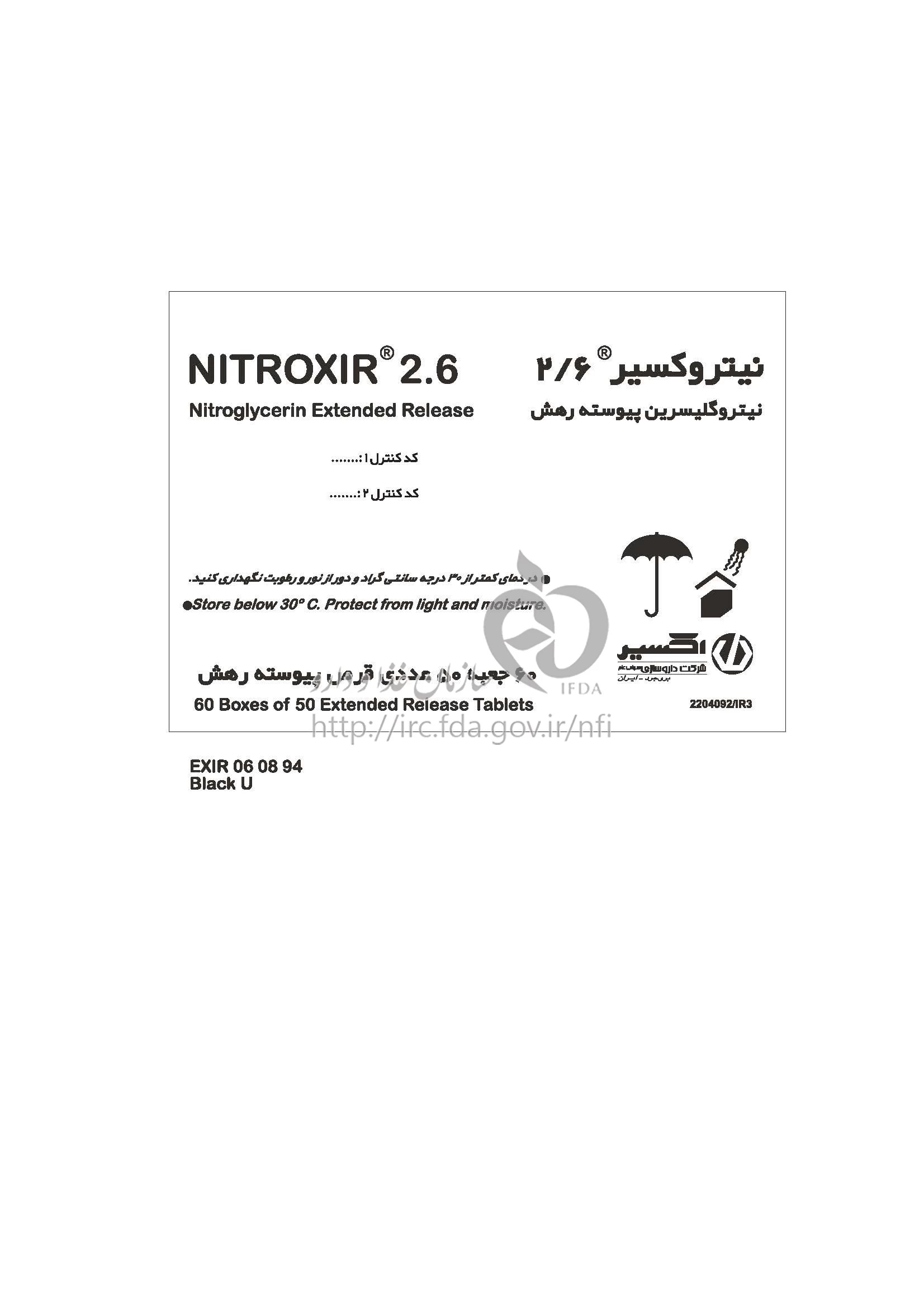 نیتروکسیر قرص پیوسته رهش خوراکی 2.6 mg