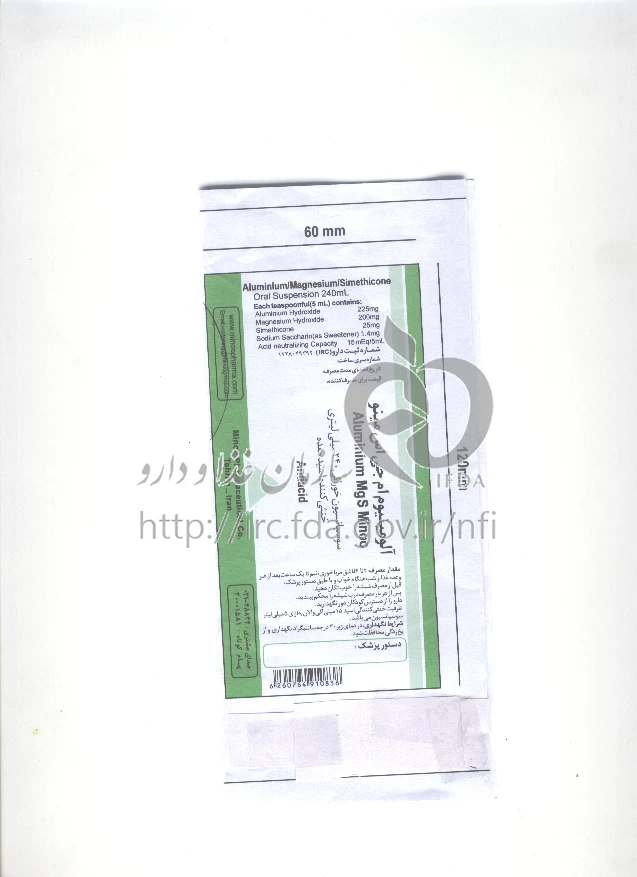 آلومینیوم ام جی اس - مینو سوسپانسیون خوراکی 225 mg/200 mg/25 mg/5mL 240MILLILITER