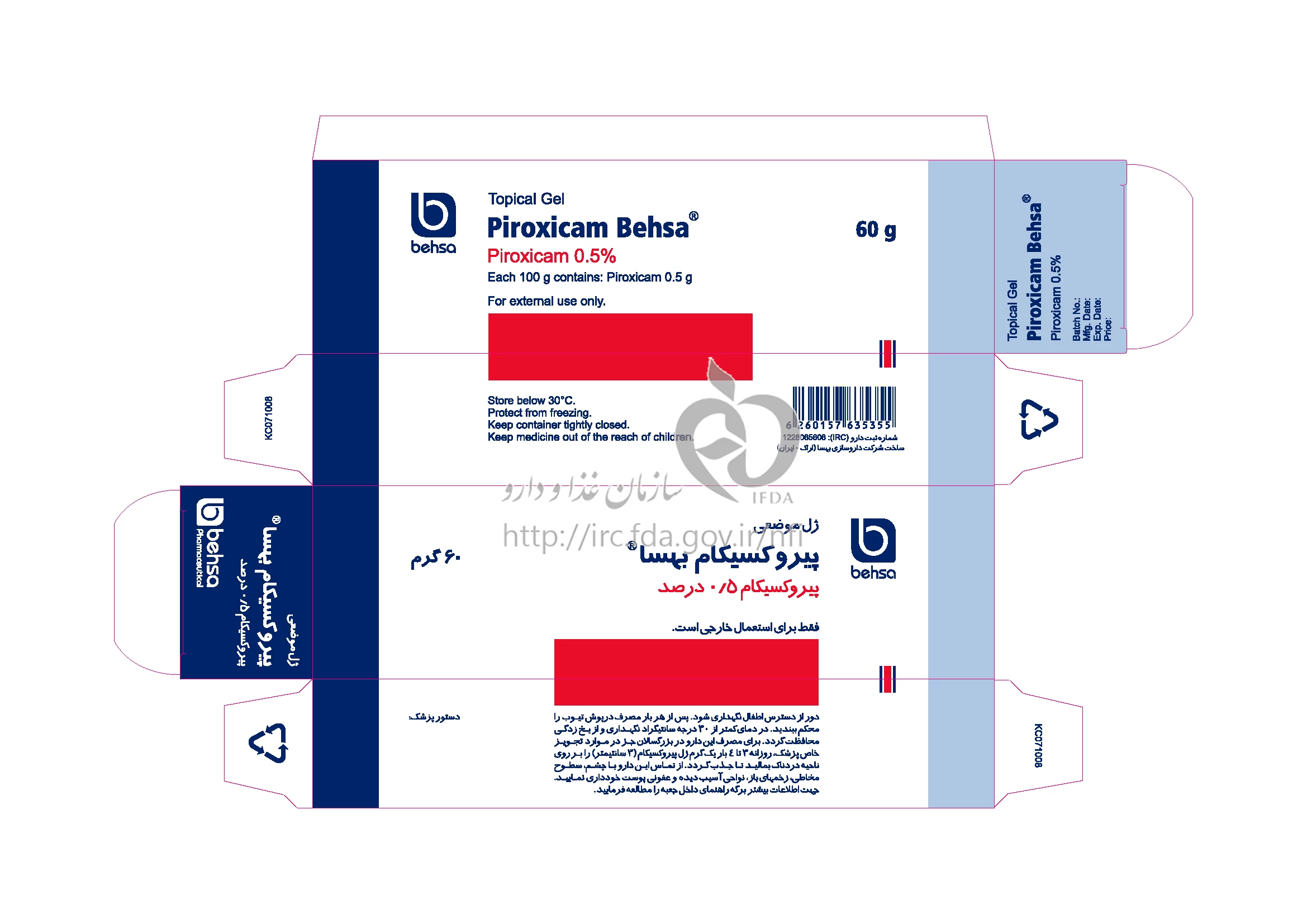 دکترها پیروکسیکام بهسا ژل موضعی 0.5 g/100g 60GRAM