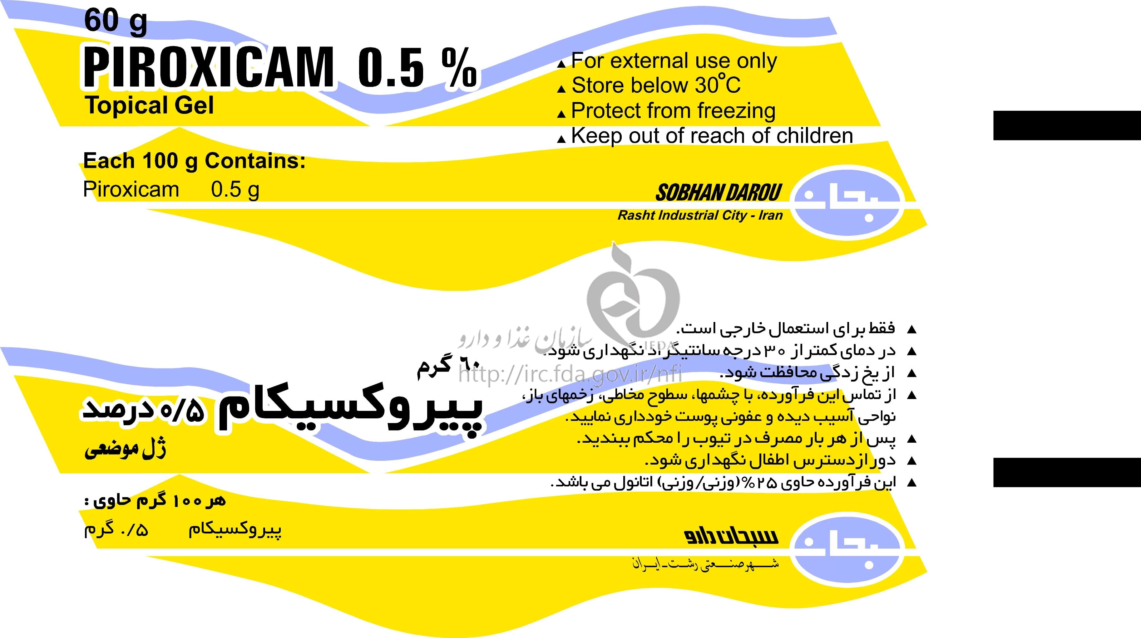 پیروکسیکام ژل موضعی 0.5 g/100g 60GRAM