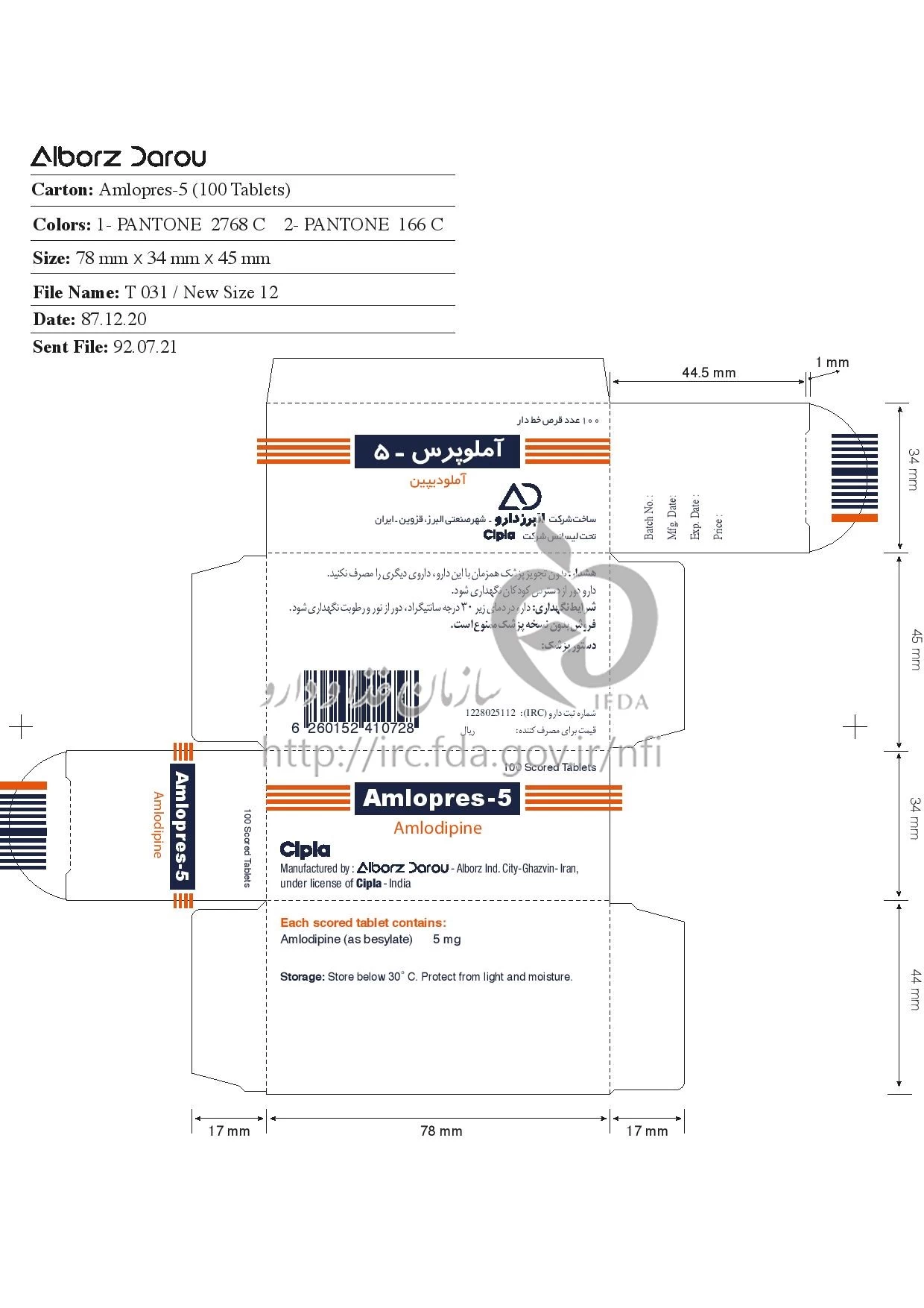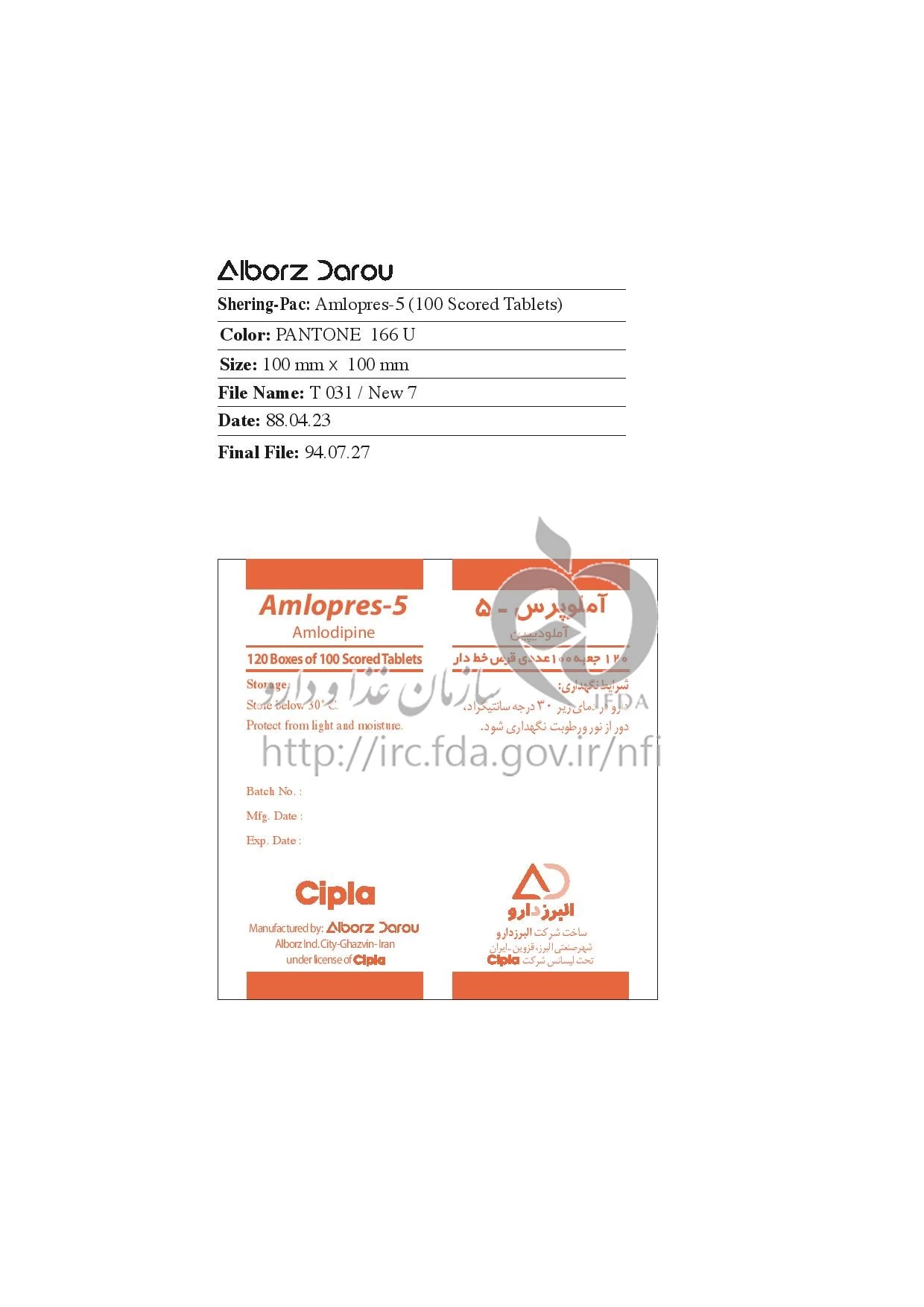 موارد مصرف آملوپرس قرص خوراکی 5 mg