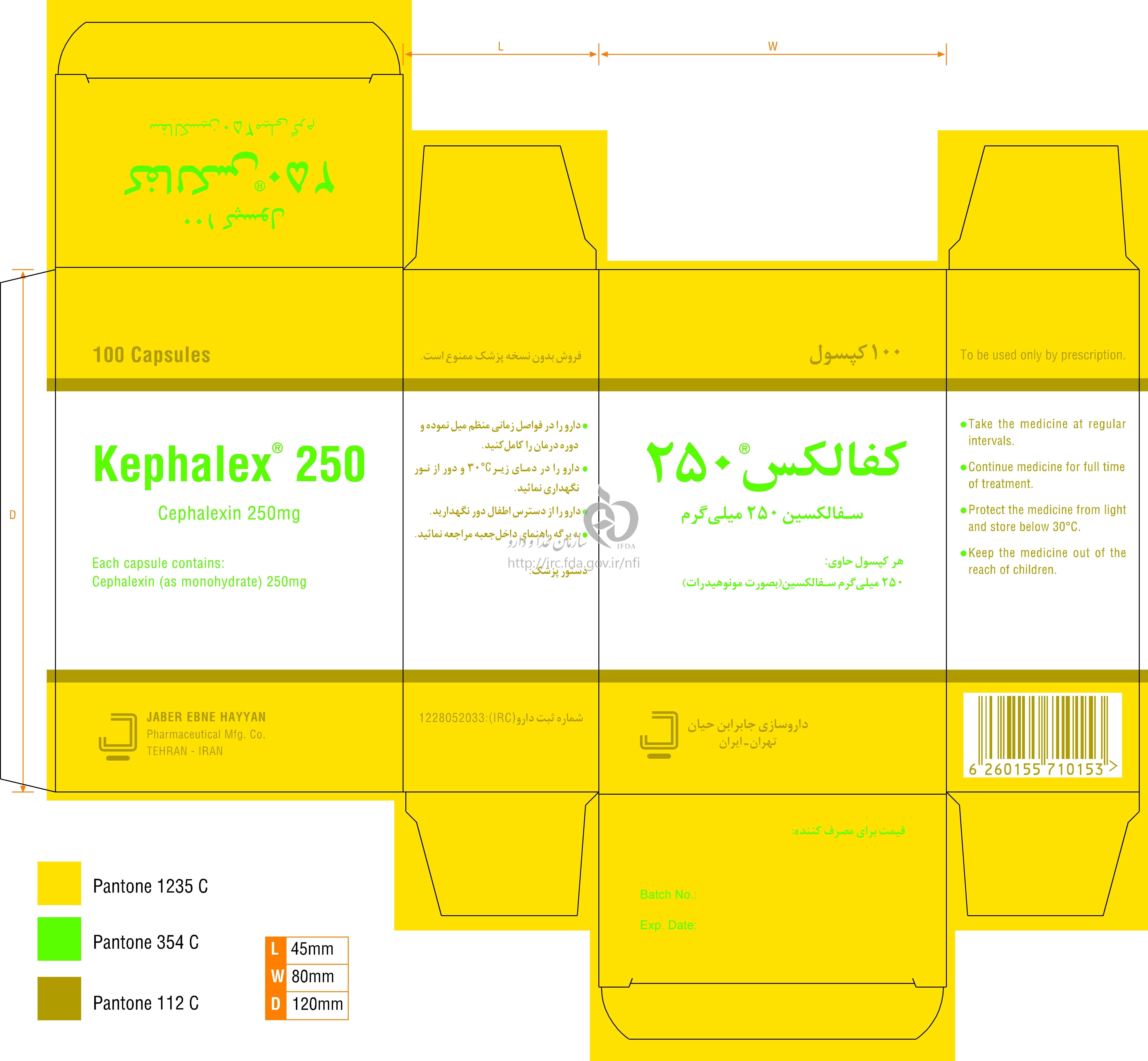 کفالکس کپسول خوراکی 250 mg