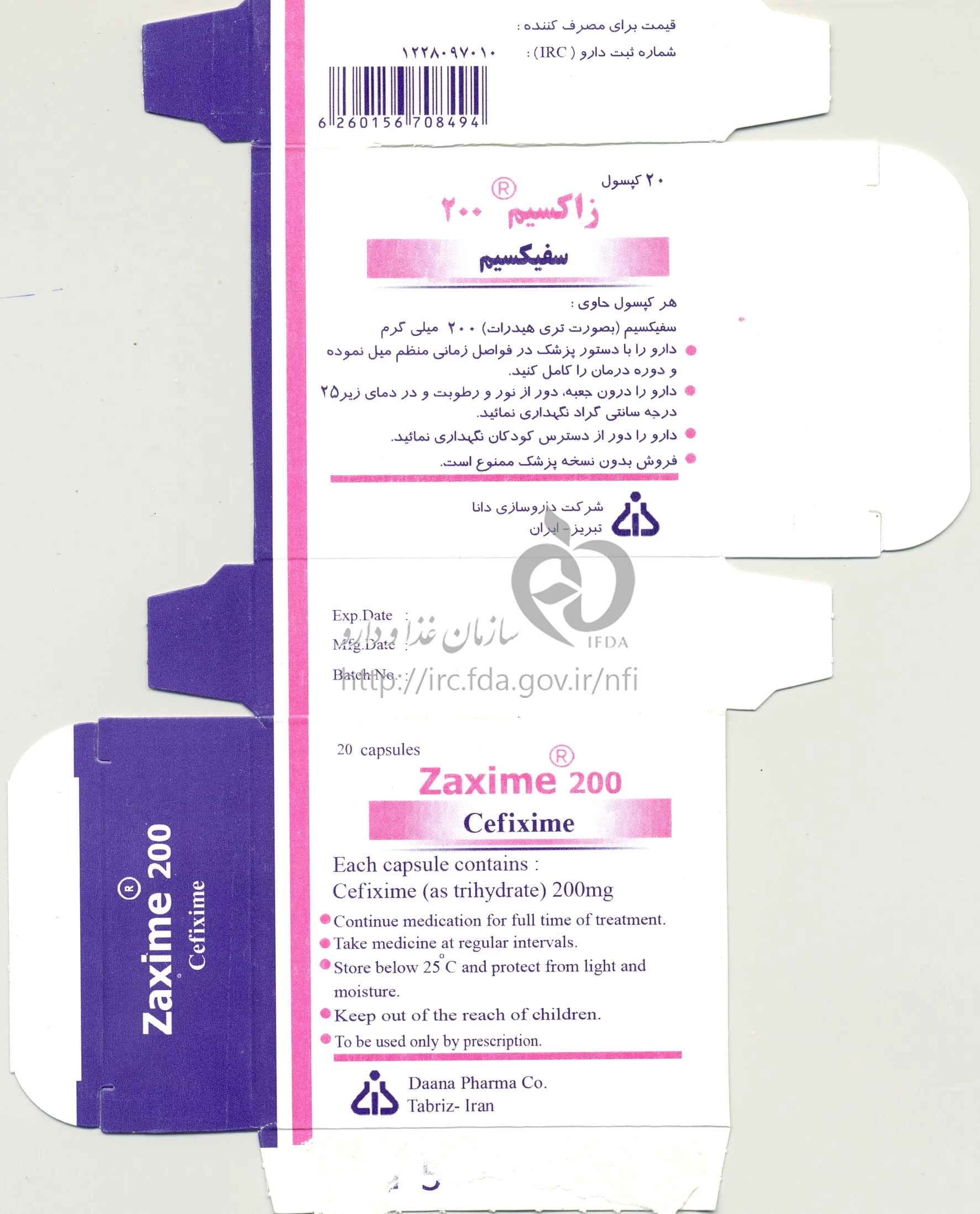 دکترها زاکسیم کپسول خوراکی 200 mg